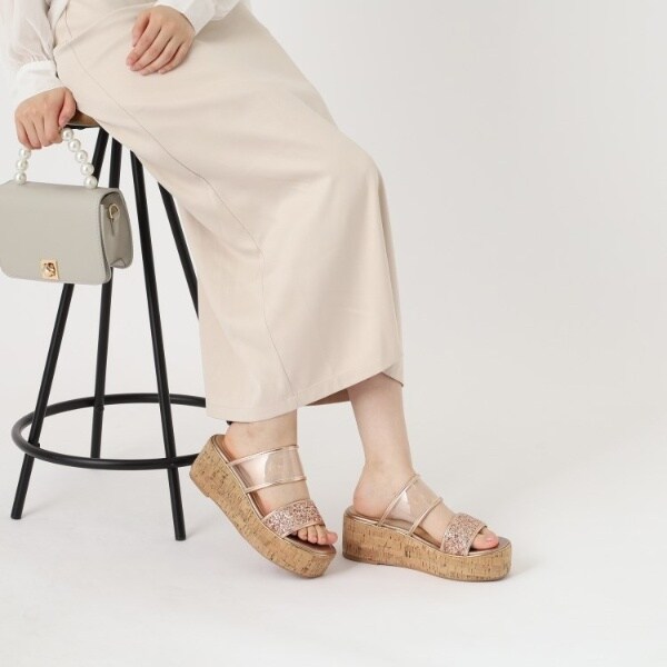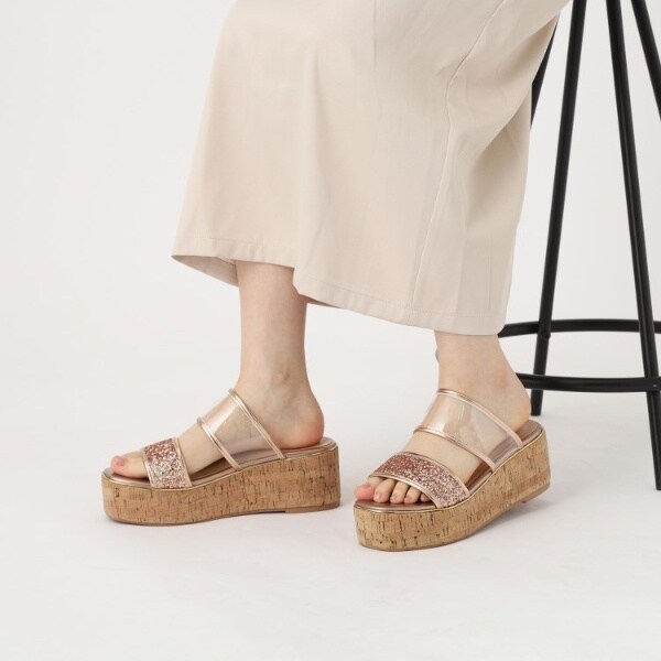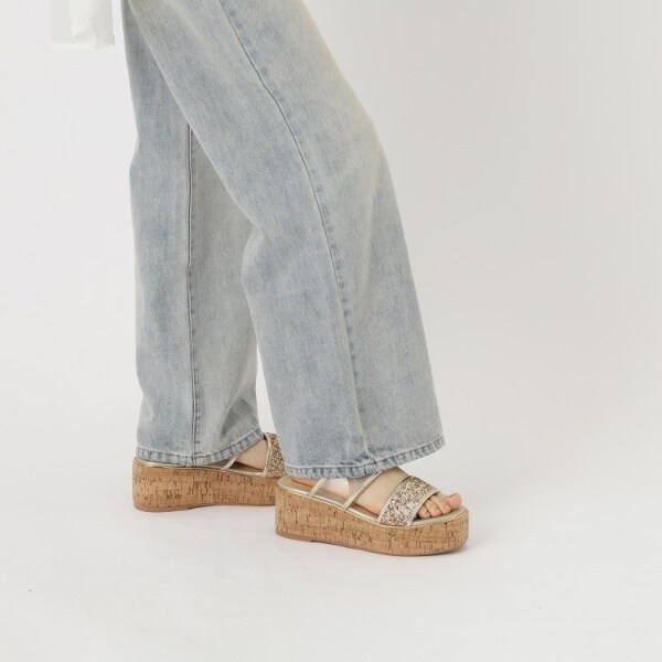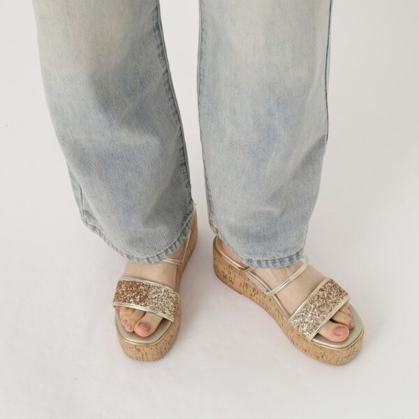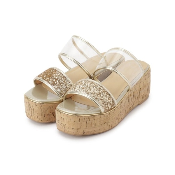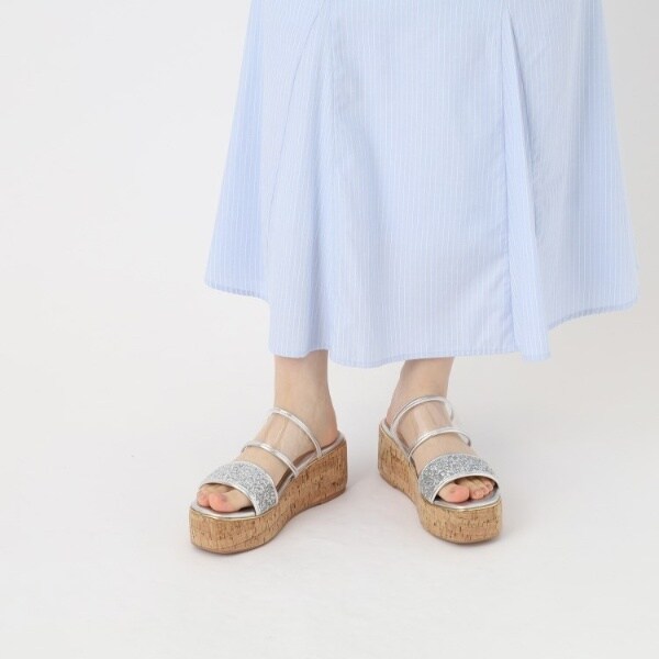 グリッター×クリアベルト 厚底コルクサンダル