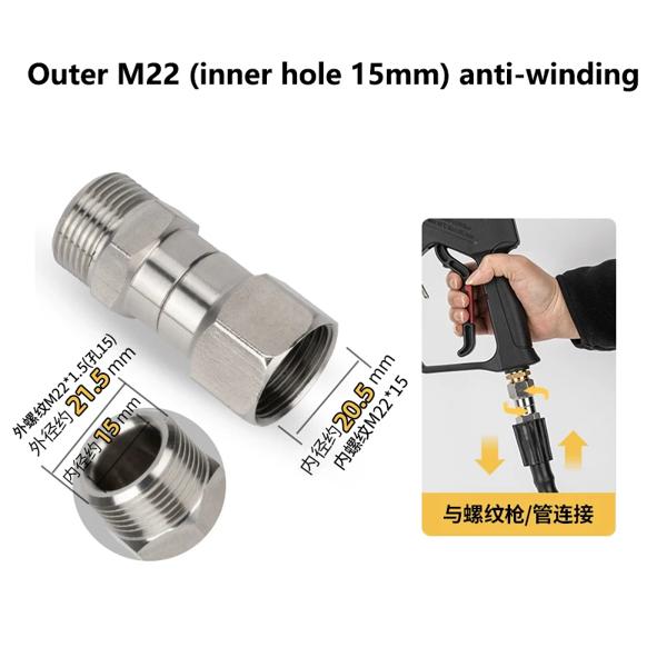 高圧洗浄機スイベル M22 14 ミリメートル 360 度キンクフリースイベル継手アンチツイスト M22 オス - メスコネクタジョイントガンホース用