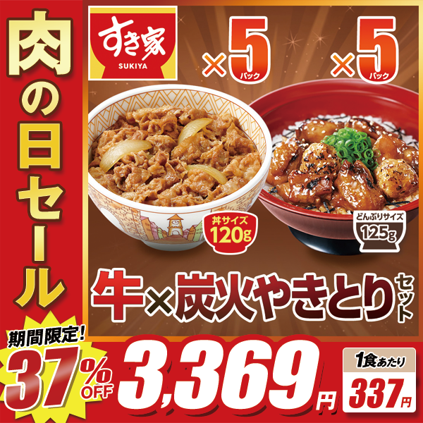 1食あたり337円!!37%OFF!! 肉の日セール!! お試しセット 牛×炭火やきとり 計10食 すき家 牛丼の具120g 5パック×炭火やきとり丼の具125g 5パック【送料無料】【冷凍(クール)】
