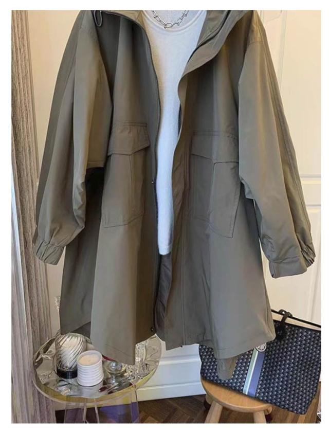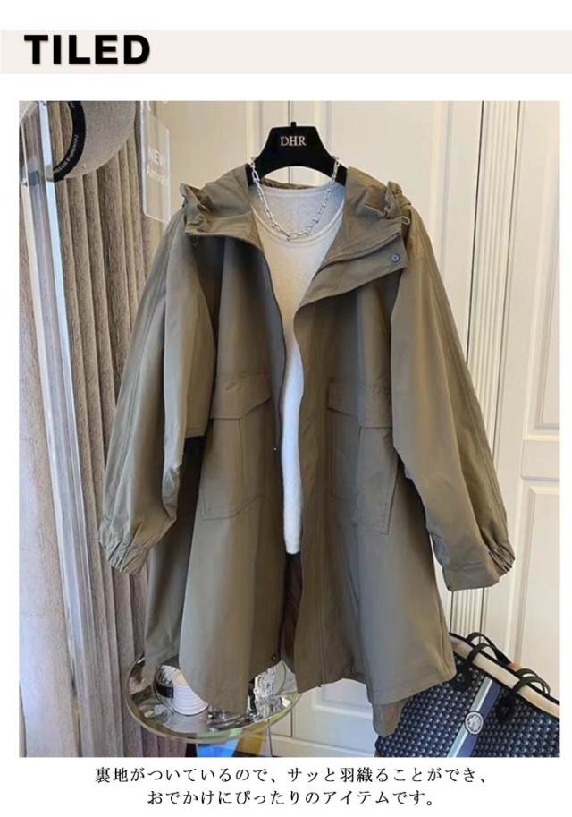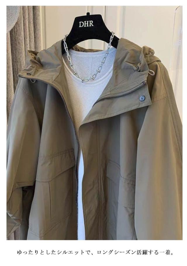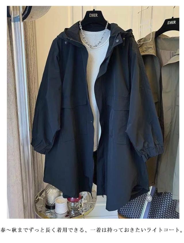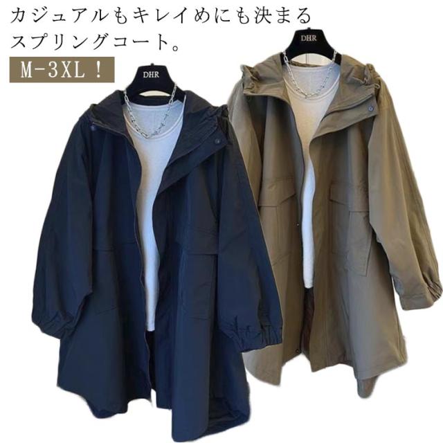 トレンチコート レディース ロング丈 コート スプリングコート 春コート ライトアウター 秋服 韓国風 フード付き マウンテンパーカー カジュアル 大人 体型カバー ゆったり 春秋 ママコート 無地 30代 40代 50代 大きいサイズ 送料無料 M-3XL