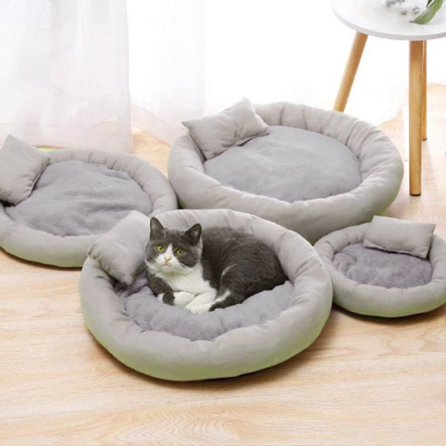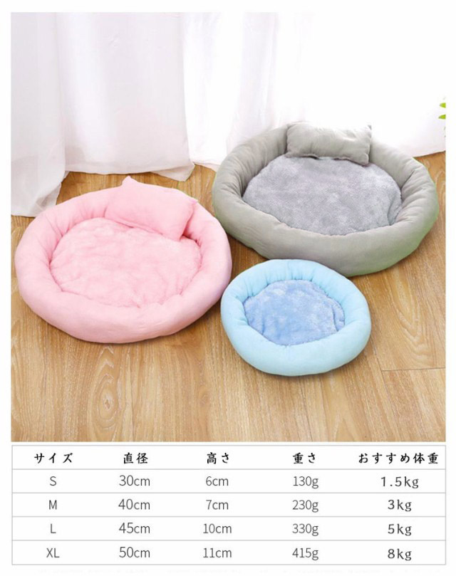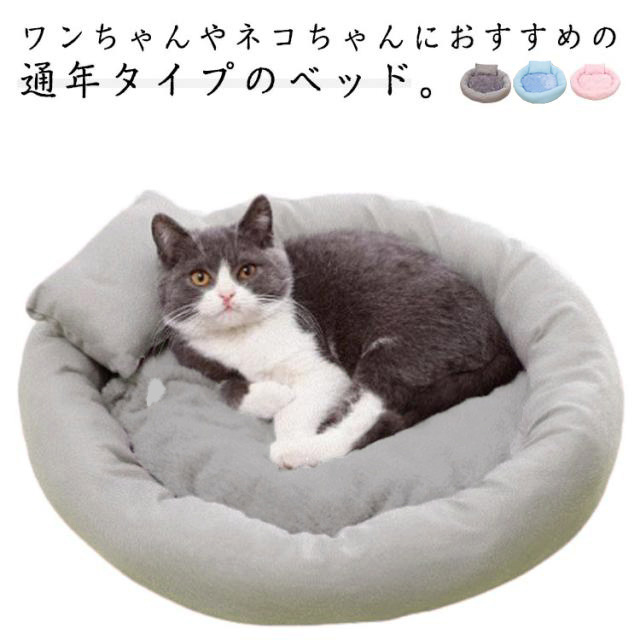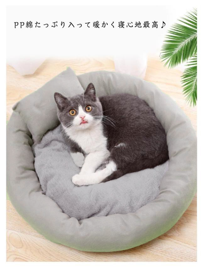 ペットベッド 犬 猫 いぬ ねこ クッション ベッド 枕付き 洗える 丸型 快適 ハウス 猫用ベッド 犬用ベッド 滑り止め付き ネコベッド パピー 子犬 子猫 あごのせ 春 夏 秋 冬 通年 寝床 小型犬 犬 オールシーズン かわいい