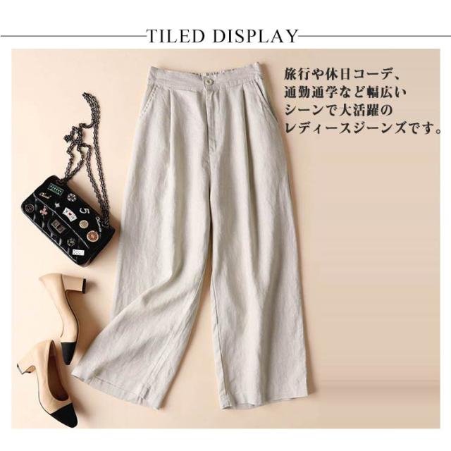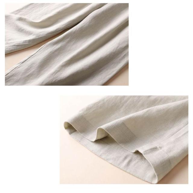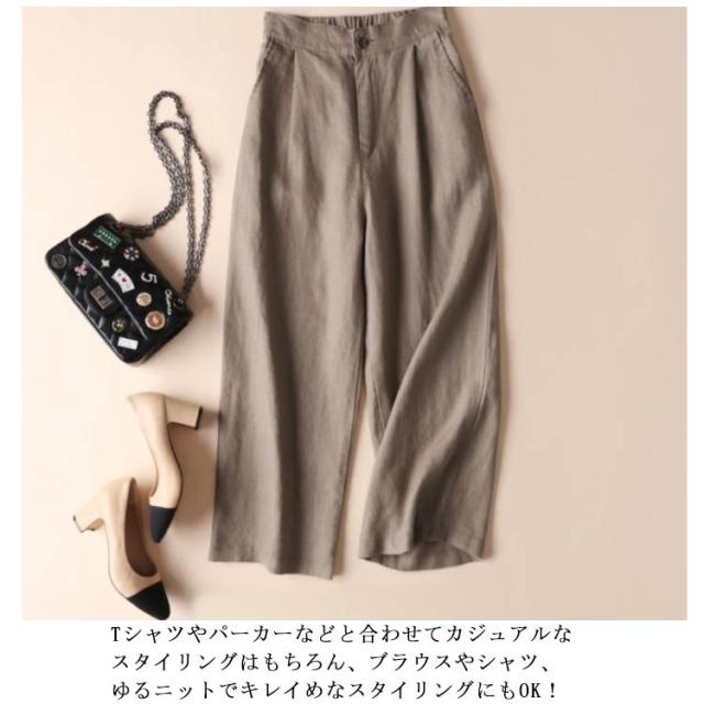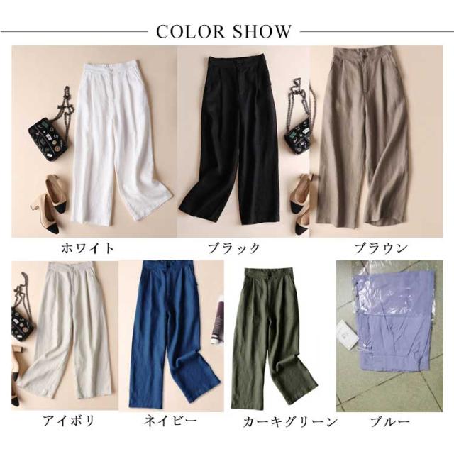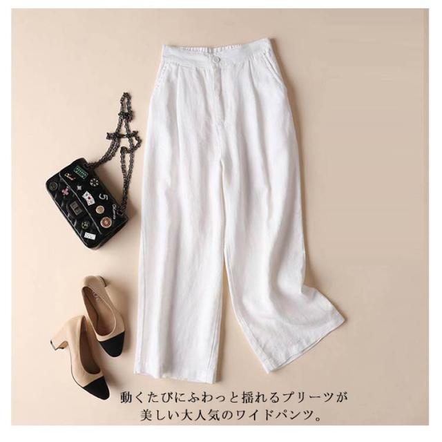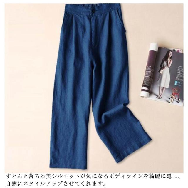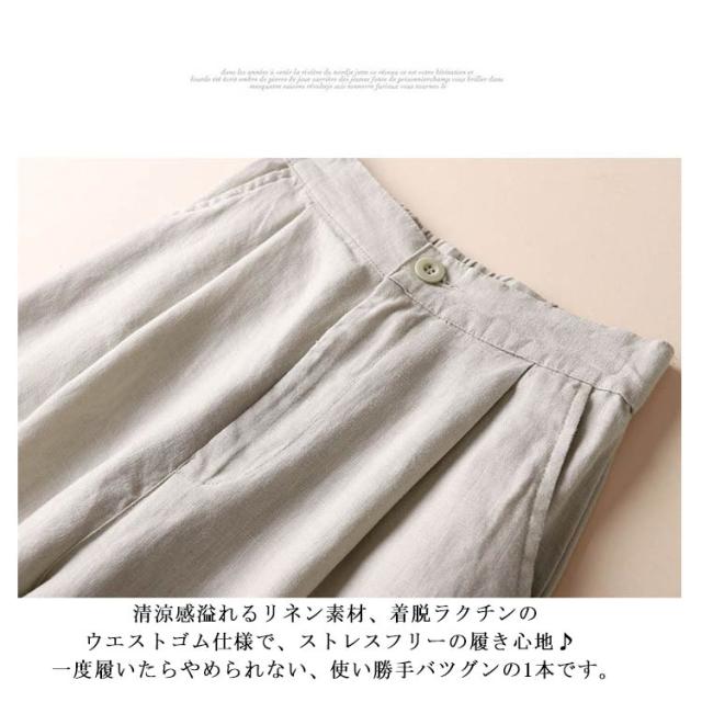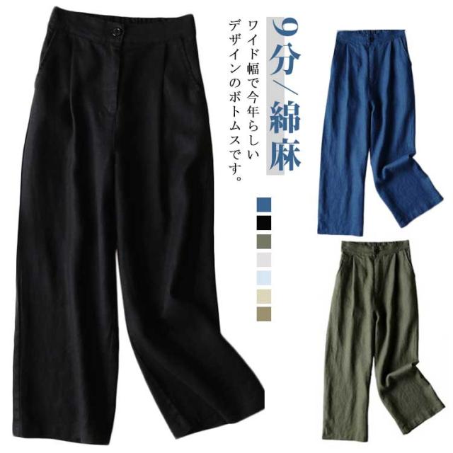 春夏秋 きれいめ セミワイド コットン リネンパンツ 9分 綿麻 リラックス ボトムス オシャレ ゆったり レディース ゴム ホワイト パンツ フォーマル ガウチョパンツ シワ感 ポケット付き 無地 麻 海 旅行 ロングパンツ