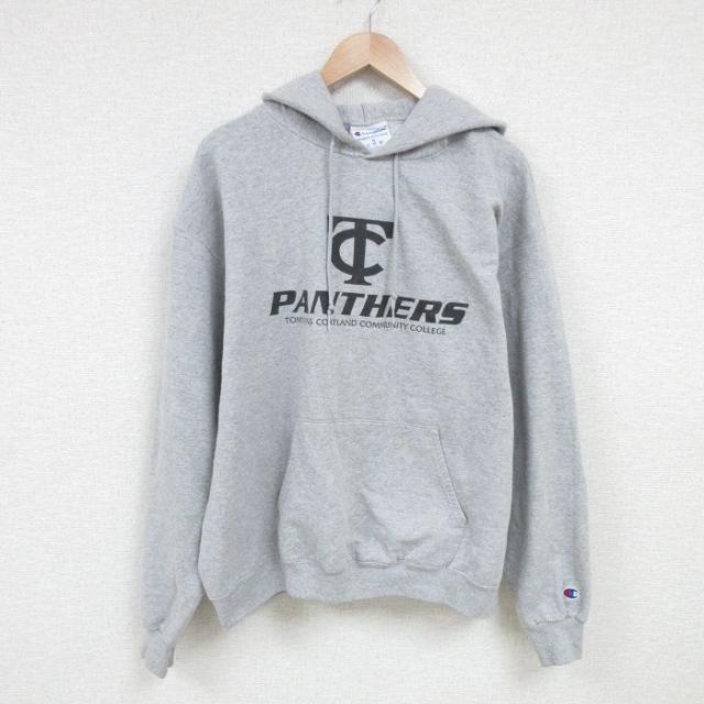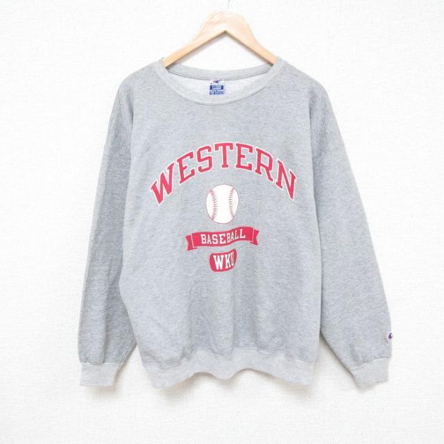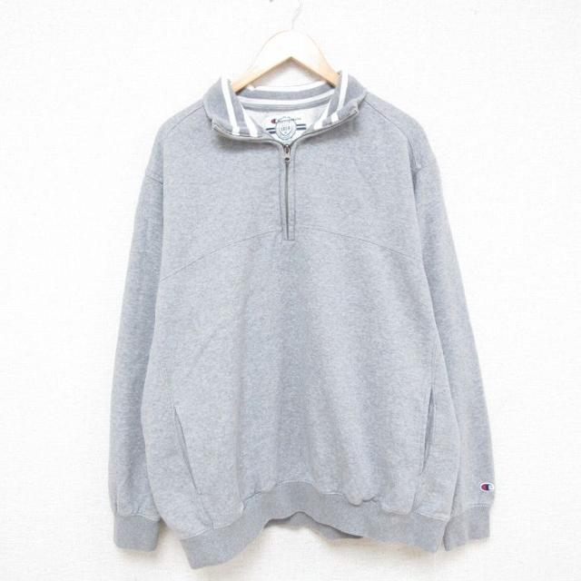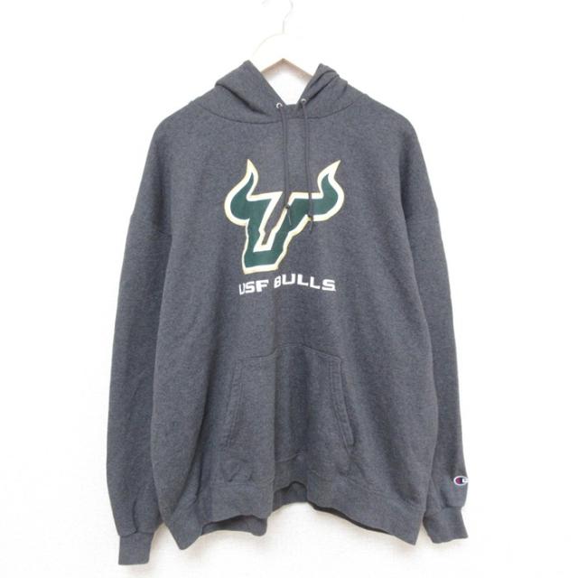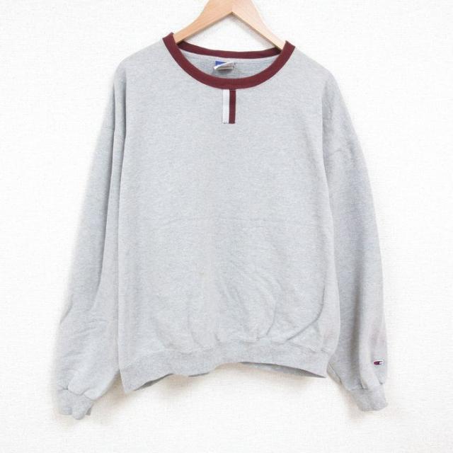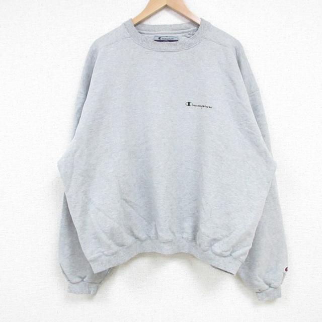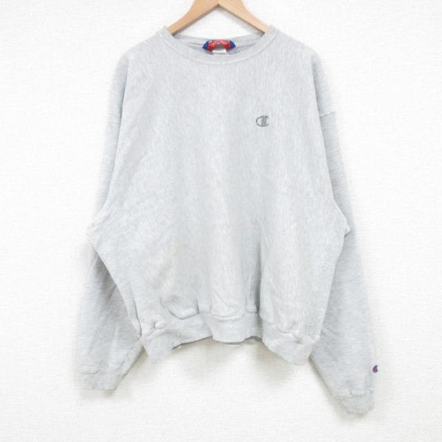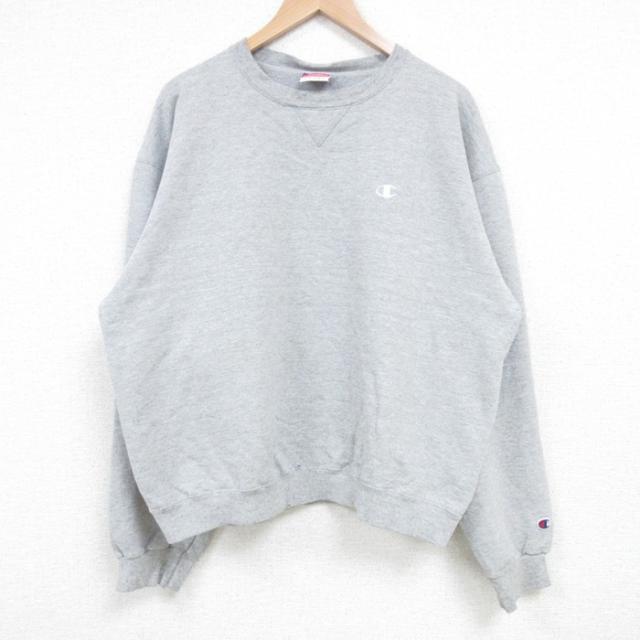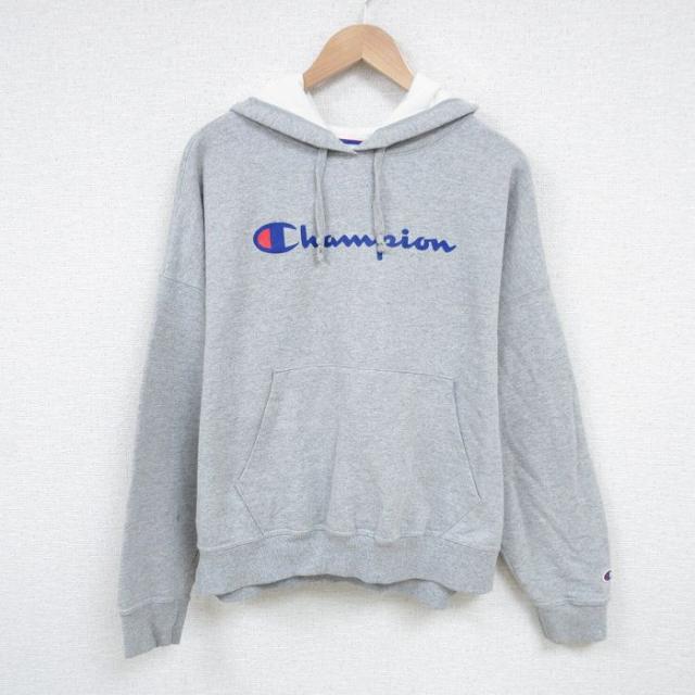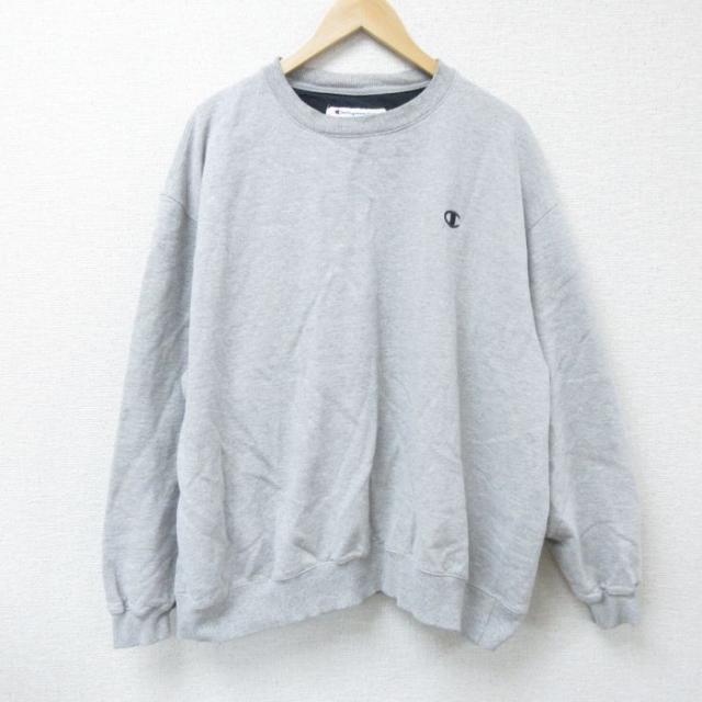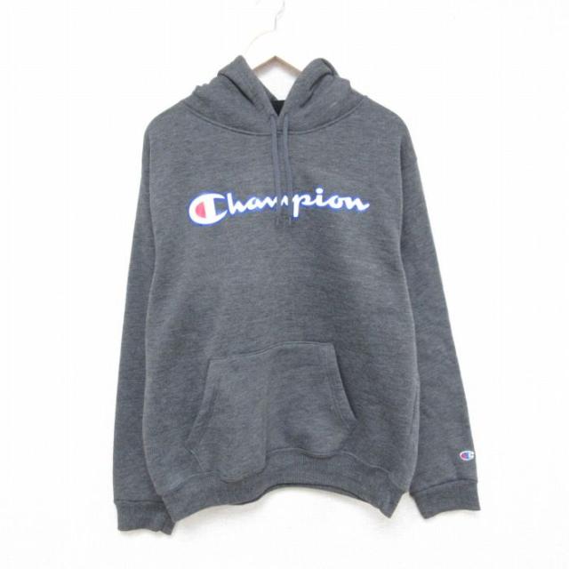 古着 チャンピオン Champion 長袖 スウェット パーカー メンズ ビッグロゴ グレー 霜降り XLサイズ 中古 スエット トレーナー 中古 古着