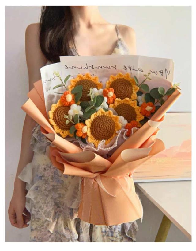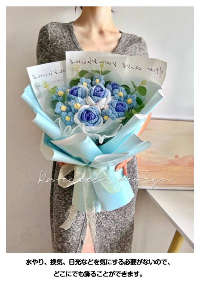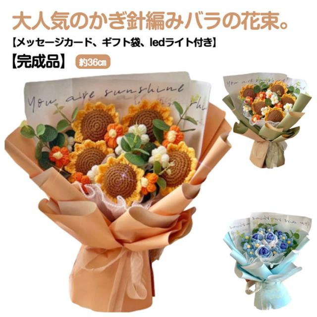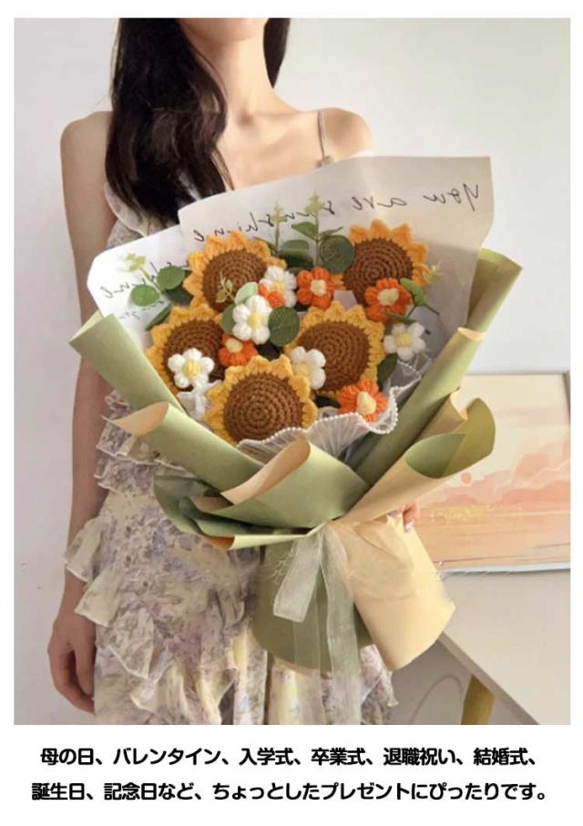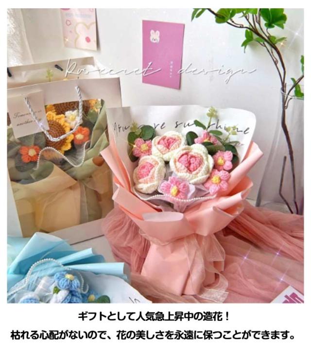 ニットフラワー 造花 花束 かぎ針編み 花 完成品 ローズブーケ ボリューム おしゃれ かわいい バラの花束 薔薇 ローズ ひまわり ブーケ 永生花 フラワーブーケ ニットブーケ 母の日 プレゼント ギフト バレンタインデー 結婚祝い 誕生日 記念日 クリスマス 【送無】
