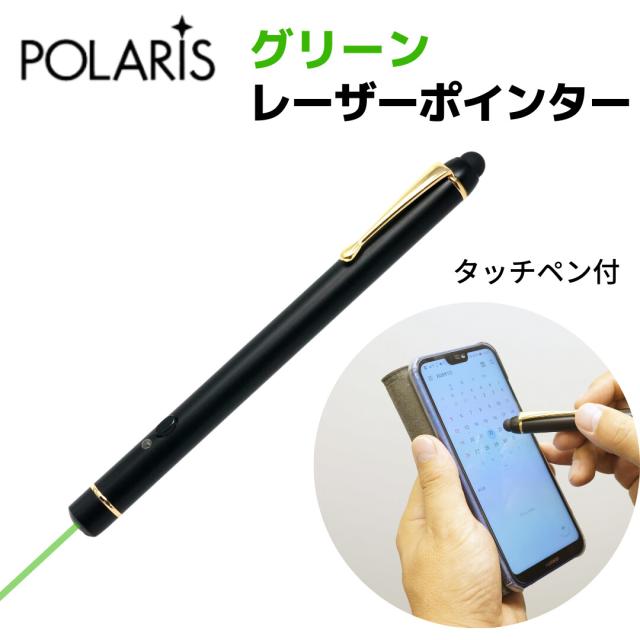 POLARIS レーザーポインター グリーン 8倍 明るい 緑 レーザー タッチペン付 PSCマーク付
