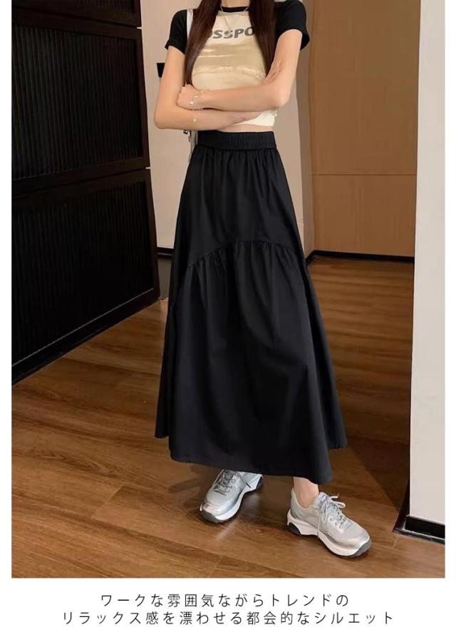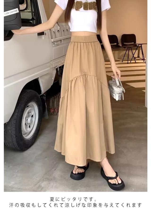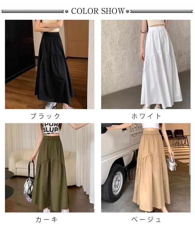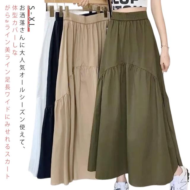 大きいサイズ フレアスカート ゆったり レディース ロング 涼しい スカート マキシ ボトムス 秋 秋物 ロング ロングスカート デート ミモレ丈 Aライン 無地 ウエストゴム 体型カバー シンプル きれいめ 春 お洒落 普段着 お出かけ スカート 大人可愛い