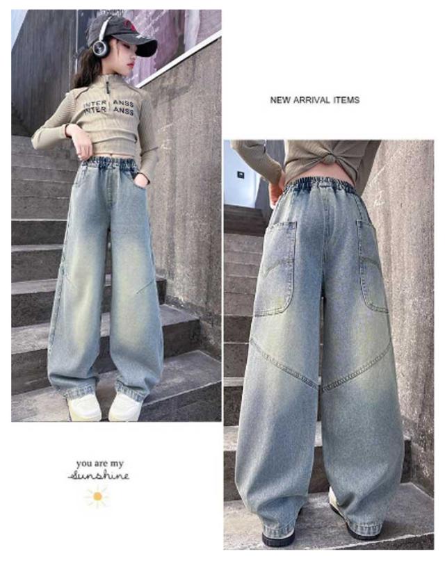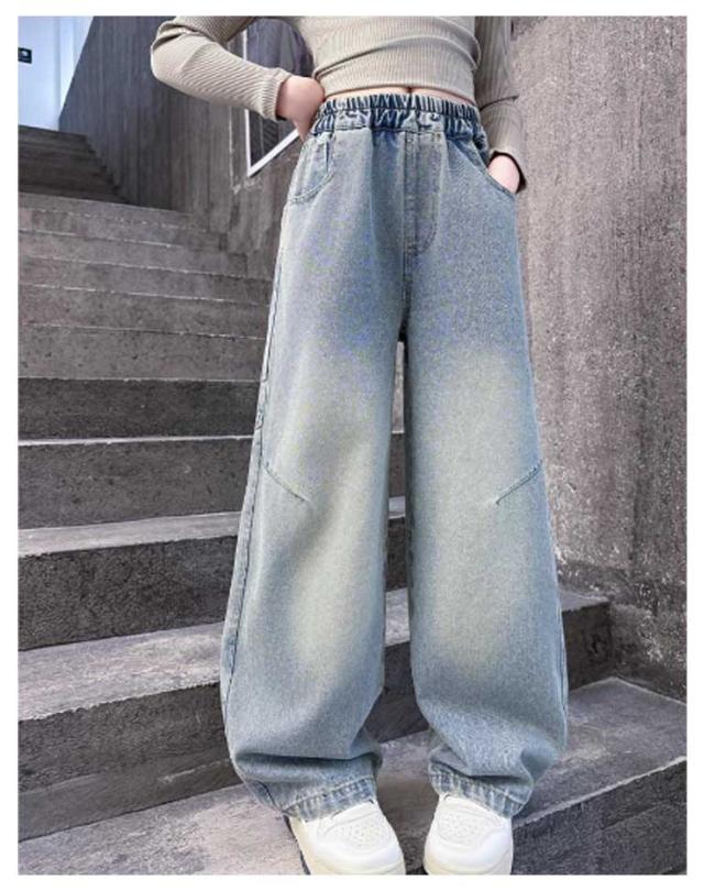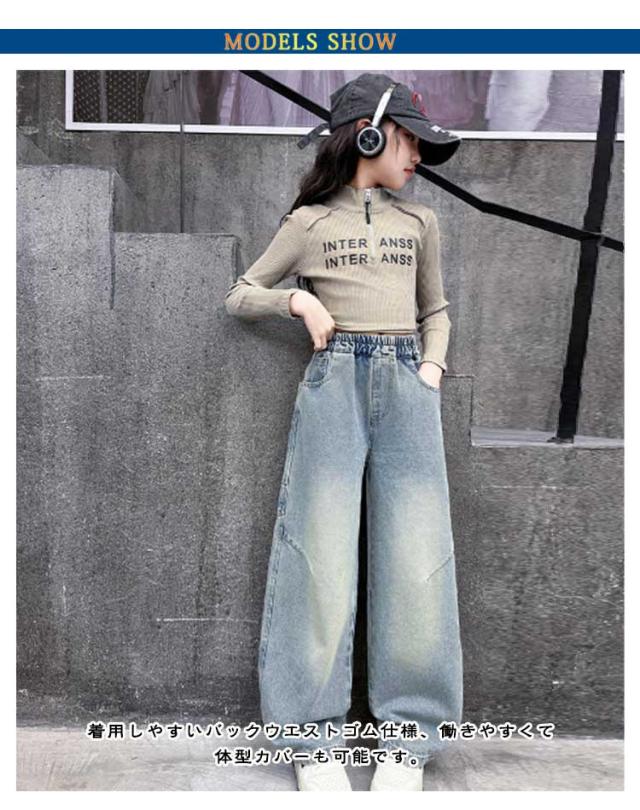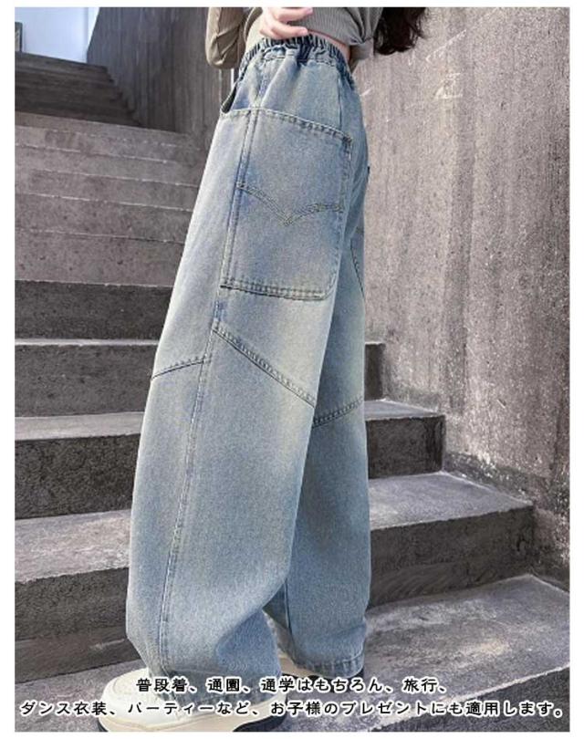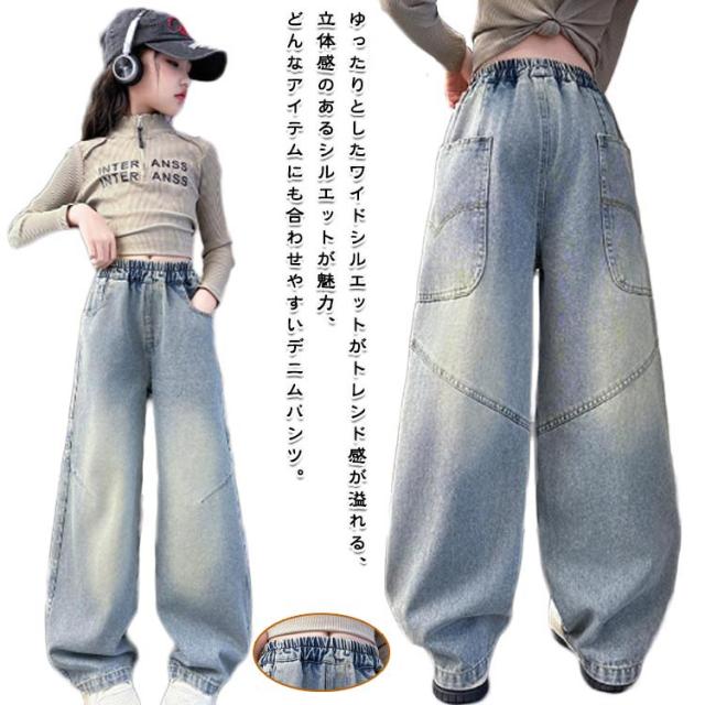 子供服 デニムパンツ ジーパン キッズ ワイドパンツ ガールズ 春夏秋 大きいサイズ ジュニア ロングパンツ ゆったり ジーンズ かわいい デニムパンツ 小学生 中学生 通園 通学