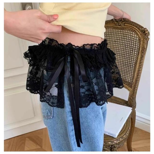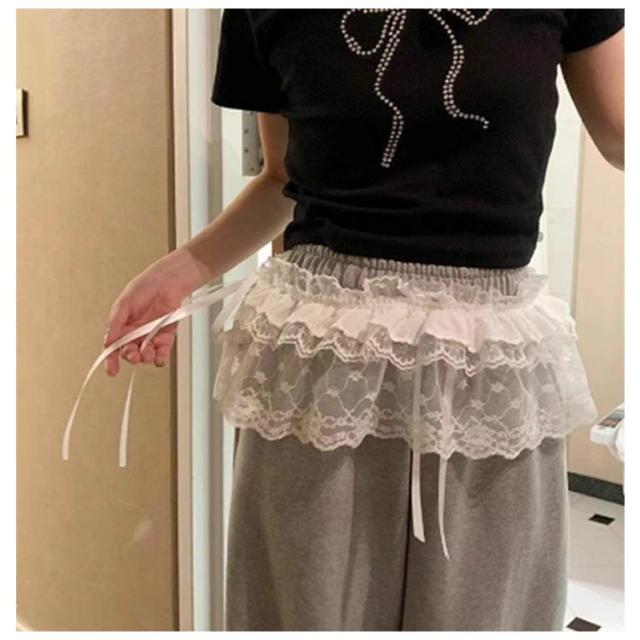 レース 重ね着風 つけ裾 レイヤード風 カジュアル シアー つけすそ 2枚セット 透け感 レディース 春夏 裾出し チラ見せ 腰まわり ミニスカート 腹巻き おしゃれ 可愛い 巻きスカート