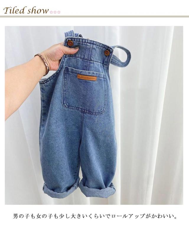 ロールアップ ジーンズ オールインワン キッズ オーバーオール 男の子 ポケット付き ベビー服 90cm キッズ 女の子 春 130cm ジュニア 秋 100cm 110cm 120cm サロペット 140cm 調整可能