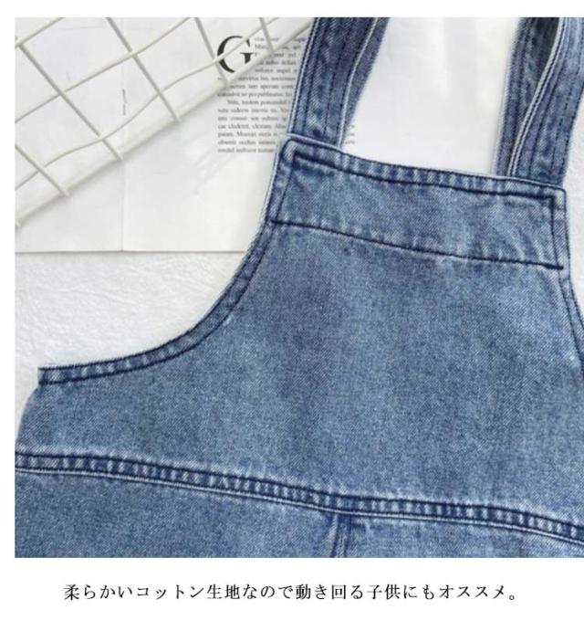 | デニム素材で仕立てたキッズ用オーバーオール。 男の子も女の子も少し大きいくらいでロールアップがかわいい。 柔らかいコットン生地なので動き回る子供にもオススメ。 肩紐で調整可能で長く着られ、成長が早いお子様に最適。 ルーズすぎないデザインで普段着はもちろん人気キャラクターの仮装としてハロウィンやイベントにも活躍、パパのDIYお手伝い作業着にも。 一年中使えて一着あれば着回しがいっぱいできます。 出産祝い、誕生日、などのプレゼントにも喜ばれます。 | |
