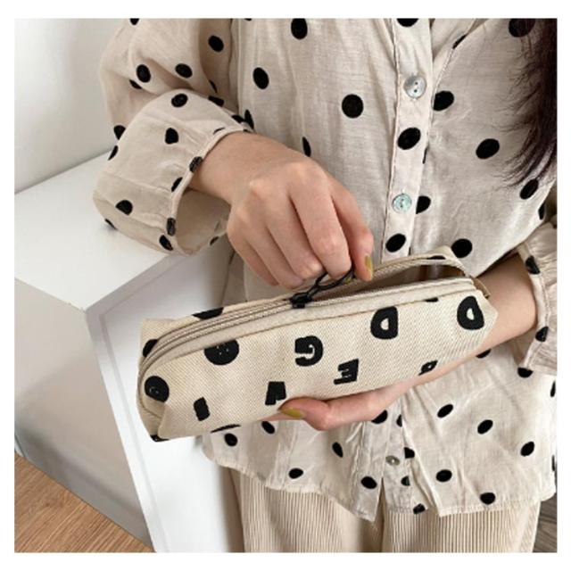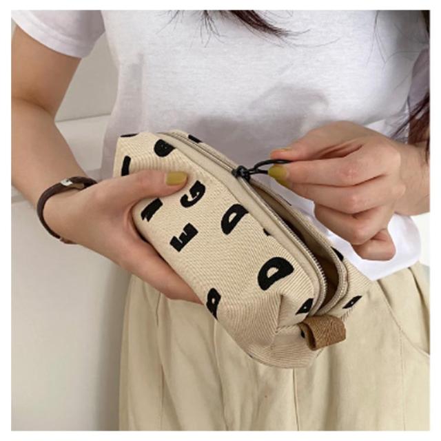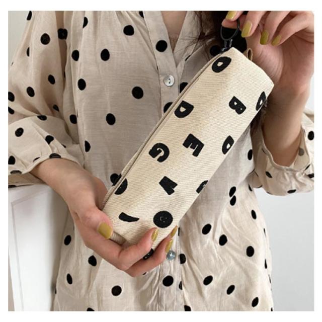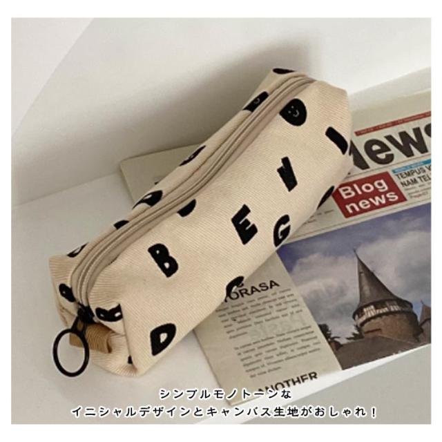 ふでばこ 筆箱 北欧 シンプル アルファベットロゴ柄ペンケース キャンバス生地 筆箱 かわいい ペンケース モノトーン 文具 化粧ポーチ 韓国 おしゃれ 可愛い スリムポーチ ブラシケース 小学生 筆箱