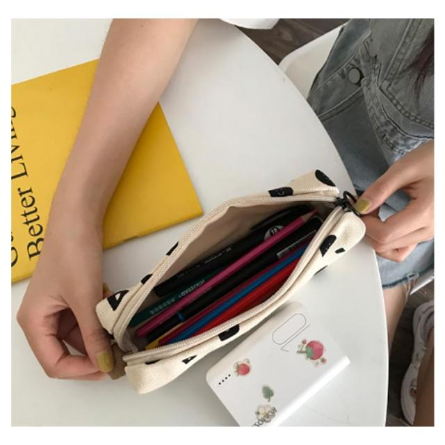 | サイズとロゴがちょっぴりリニューアル! トレンドの韓国っぽさたっぷりで可愛いペンケース シンプルモノトーンなイニシャルデザインとキャンバス生地がおしゃれ! ペンなどの文房具やメイクブラシなど収納できます。 | |