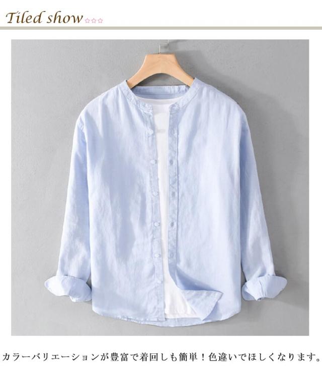 メンズ 男の子 綿シャツ 綿 開襟シャツ シャツ ブラウス シャツ 長袖 トップス メンズファッション ノーカラー カジュアルシャツ メンズ 普段着 部屋 海辺 デート ギフト