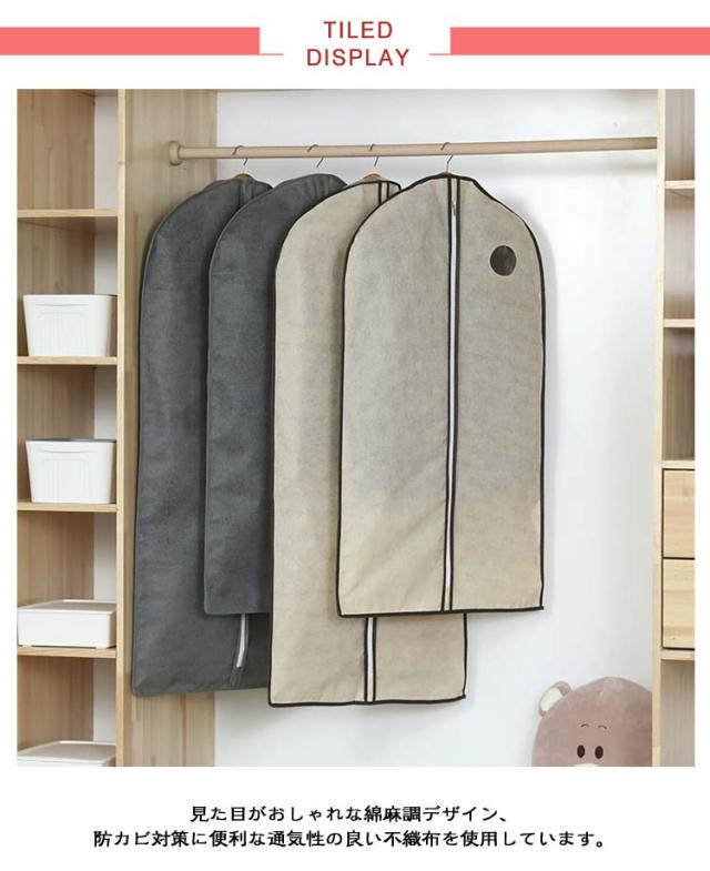 | 厚みのあるコートやジャケットもスッキリ保管♪ 見た目がおしゃれな綿麻調デザイン、防カビ対策に便利な通気性の良い不織布を使用しています。 裾の部分が閉じているため、床から舞い上がらるほこりやダニなどもしっかりシャットアウト。 ハンガーを通す穴はわずかな隙間のみ。トップ部分がマチ付きで、厚みのある木製ハンガーなどもらくらく収納。 不透明ながら、小窓から収納した衣類を確認することができます。光による服の変色を防ぐため、小窓は小さめになっています。 かさばるダウンなどのアウターを、厚みを抑えられるので、コンパクト収納でき、一石二鳥です♪ 出し入れのし易い、ジップ式。下まで大きく開く間口設計ですので、吊ったままで出し入れできる洋服カバーです。 | |