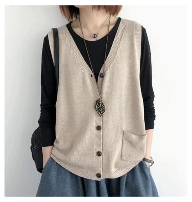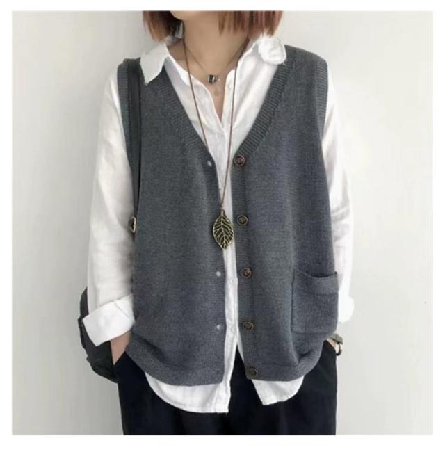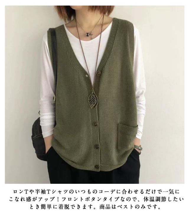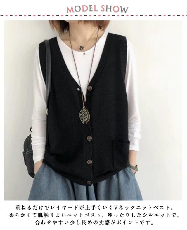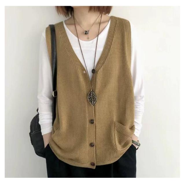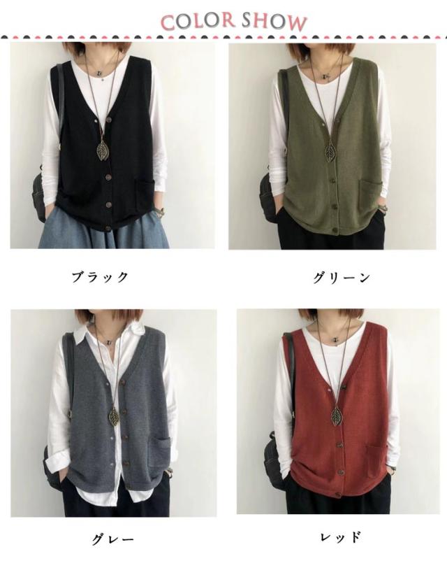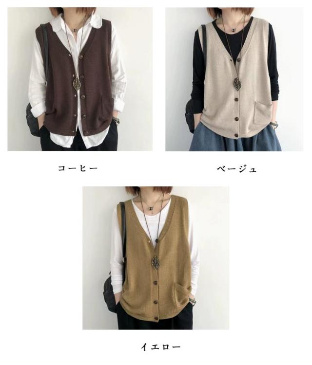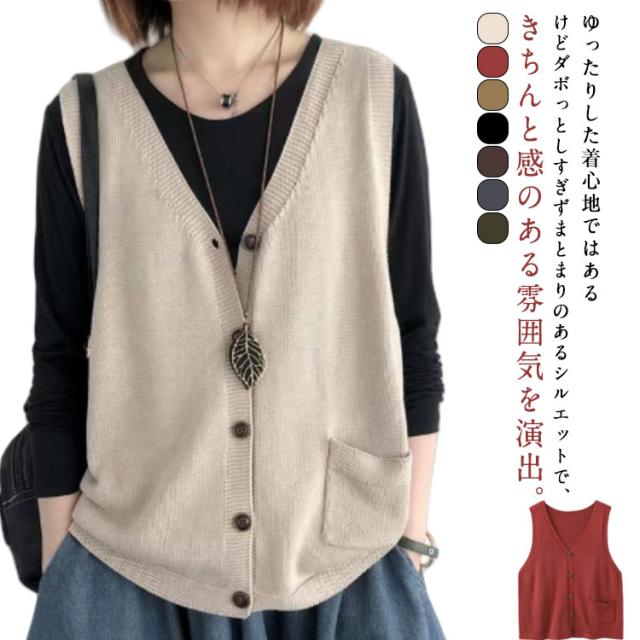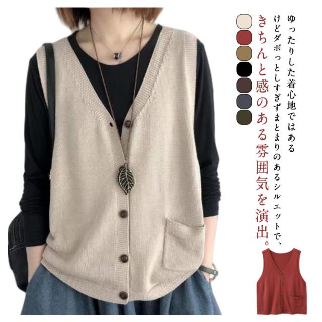 カーディンガン ベスト レディース 前開き ニット ニットベスト Vネック 無地 ベスト トップス 秋 ニットベスト ノースリーブ ゆったり セーター 普段着 レイヤード トップス 大きいサイズ 重ね着 体型カバー カジュアル 大人 ナチュラル 40代 50代 60代