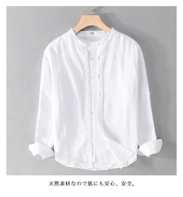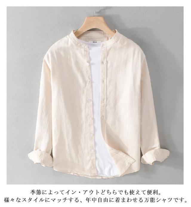 メンズ 長袖 ノーカラー 綿 シャツ 開襟シャツ ビジネス 綿シャツ 男の子 トップス ブラウス メンズファッション シャツ メンズ 普段着 部屋 海辺 デート ギフト