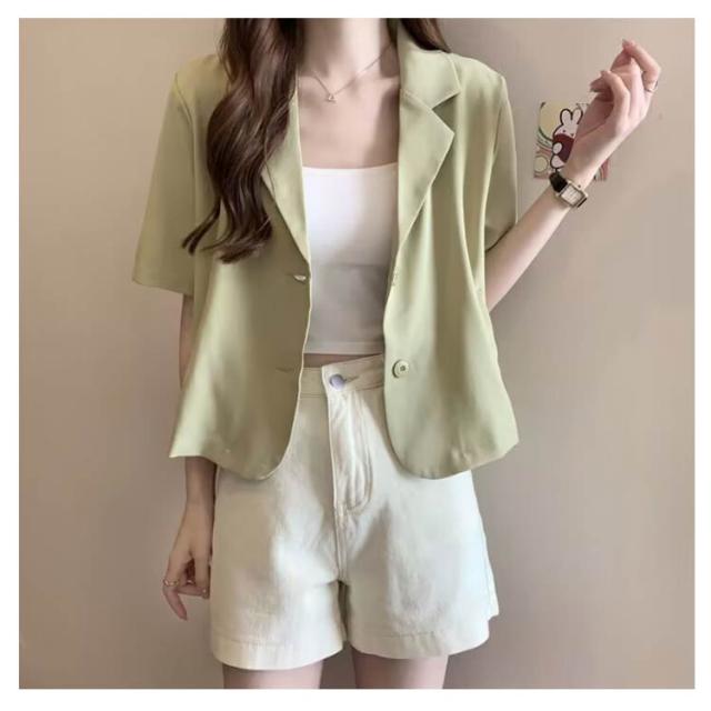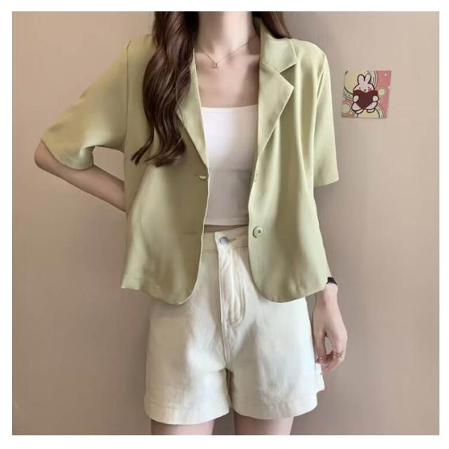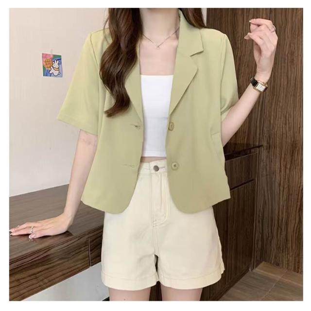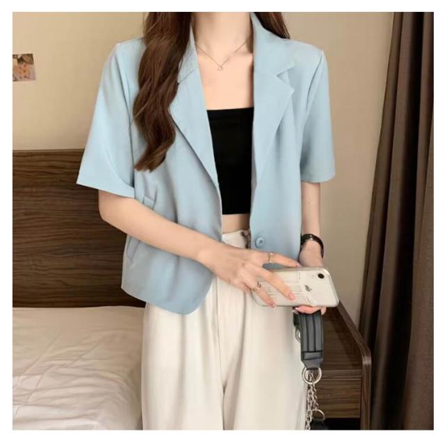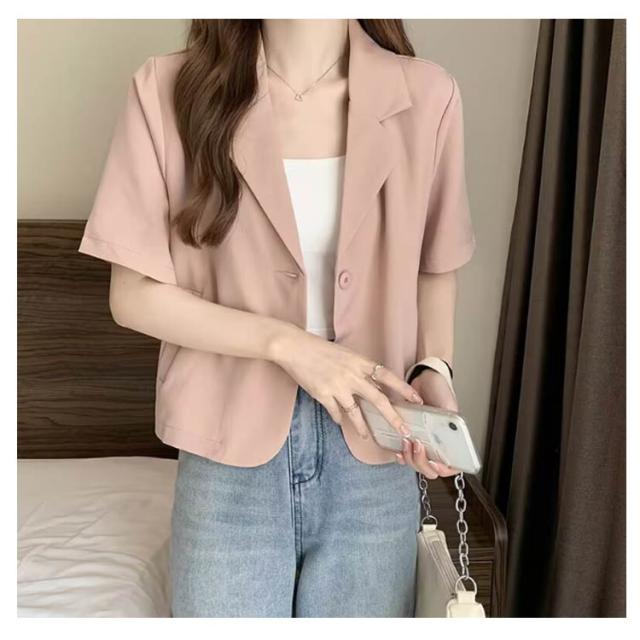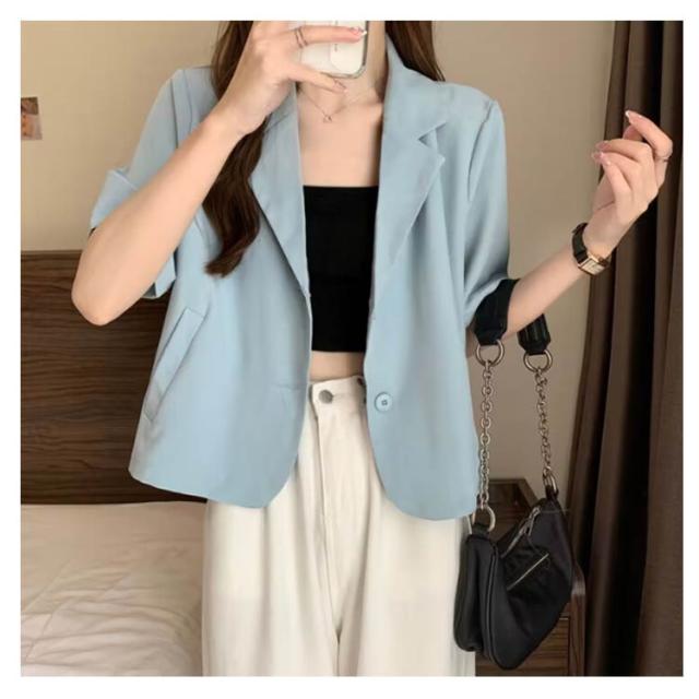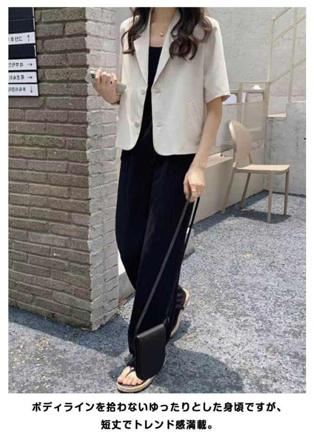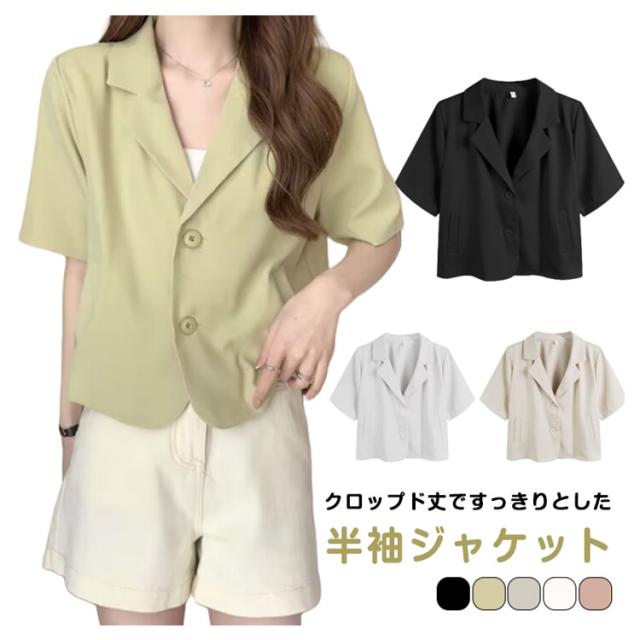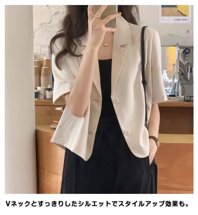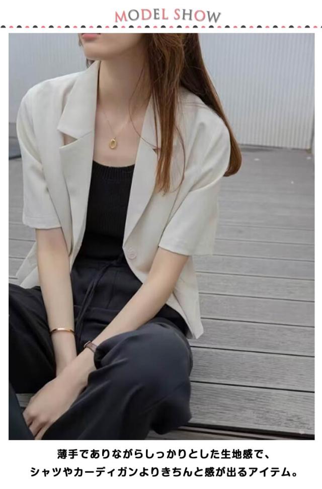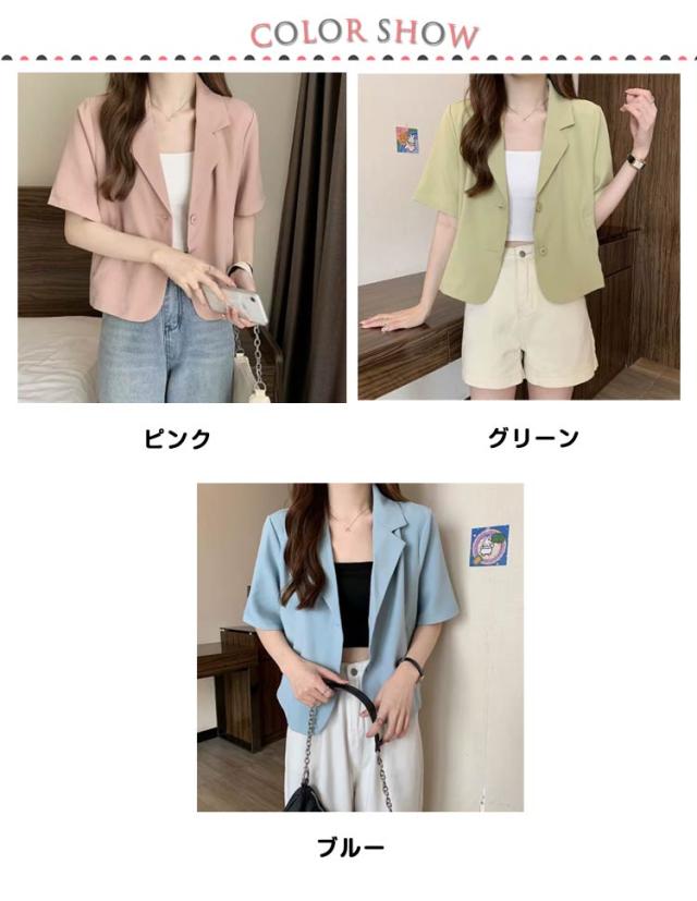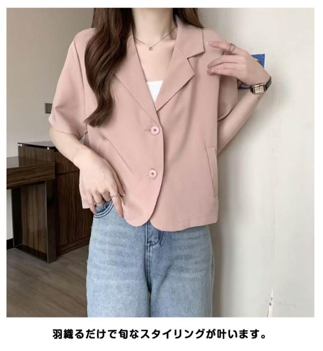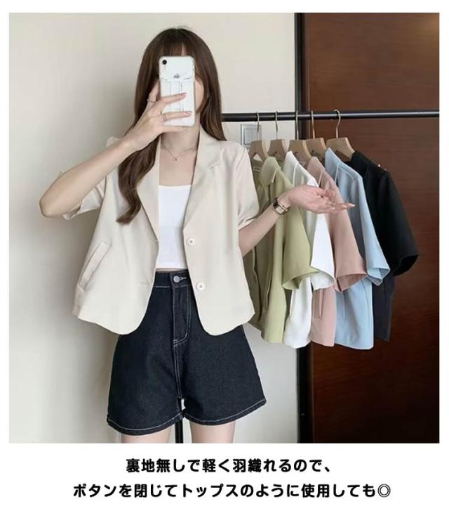 ショート 半袖 テーラードジャケット スーツ 夏 ジャケット アウター サマージャケット 裏地なし クロップド丈 レディース 接触冷感 薄手 カジュアル 春 ライトアウター 大人 ブラック ピンク アウター 学生 20代 30代 40代 50代