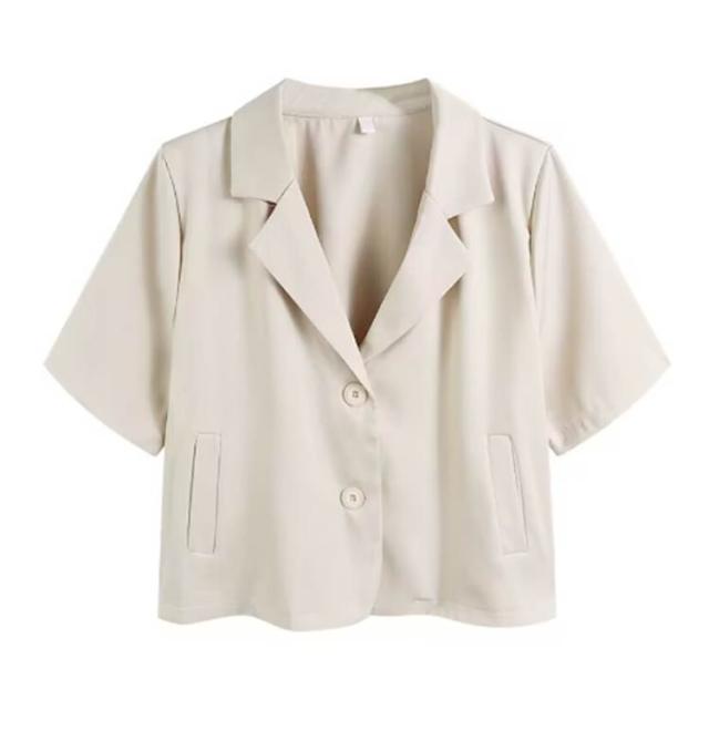 | クロップド丈ですっきりとした半袖ジャケット。 薄手でありながらしっかりとした生地感で、シャツやカーディガンよりきちんと感が出るアイテム。 裏地無しで軽く羽織れるので、ボタンを閉じてトップスのように使用しても◎ ボディラインを拾わないゆったりとした身頃ですが、短丈でトレンド感満載。 Vネックとすっきりしたシルエットでスタイルアップ効果も。 羽織るだけで旬なスタイリングが叶います。 | |