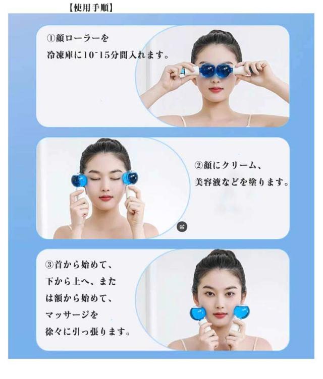 | アイスフェイスローラー 2個セット 冷却効果 肌を引き締め 冷却効果があります!顔のむくみを軽減したり、肌を落ち着かせたり、毛穴を引き締めます。 顔、首、目の下など体のさまざまな部位に使用できます。 肌の引き締めや、美容液の吸収などに役立つアイテムです。 【使用手順】 1.顔ローラーを冷凍庫に10~15分間入れます。 2.顔にクリーム、美容液などを塗ります。 3.首から始めて、下から上へ、または額から始めて、マッサージを徐々に引っ張ります。 | |