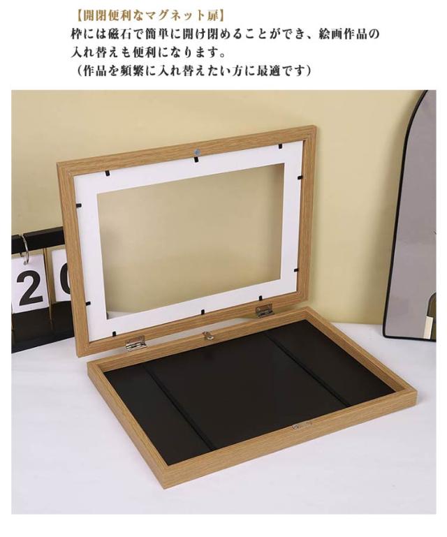 ポスターフレーム ディスプレイ 木製 写真 マグネット おしゃれ 子供の絵を飾る 絵画 額縁 壁掛け 画用紙 フォトフレーム 写真立て お絵描き A4 写真フレーム 横縦兼用 アートフレーム 作品 保管 絵画教室 幼稚園 誕生日 プレゼント