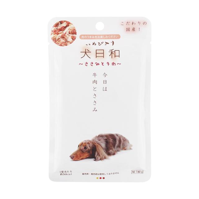 犬日和レトルト ささみと牛肉 こだわりの国産 80g わんわん ドッグフード 犬用フード ペットフード 日本製 ペット用品 ペット