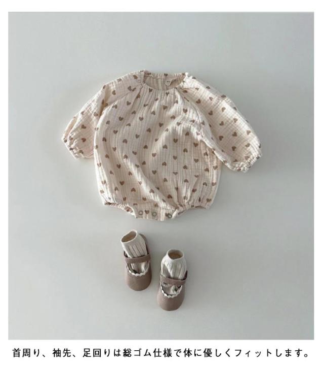 | ナチュラルな総柄デザインが可愛いロンパース♪ 柔らかなコットン100%素材で通気性・吸湿性も抜群。 股にスナップボタンがついていて、着替えやオムツ替えもしやすくなっております ゆとりのある着用感でお子様の動きを妨げず、柔らかい生地感で着心地抜群です。 首周り、袖先、足回りは総ゴム仕様で体に優しくフィットします。 それと女の子と男の子も全部着用できます 兄妹や姉妹、お友達とでお揃いで着てもGOOD◎ | |