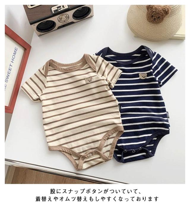 柔らかい カバーオール 女の子 ショートロンパース 半袖 ボーダー 新生児 出産祝い ベビー服 新生児 韓国子供服 夏 ロンパース 股ボタン 男の子 北欧風 普段着 肌着 七五三 退院着 お出かけ 部屋着 66 73 80