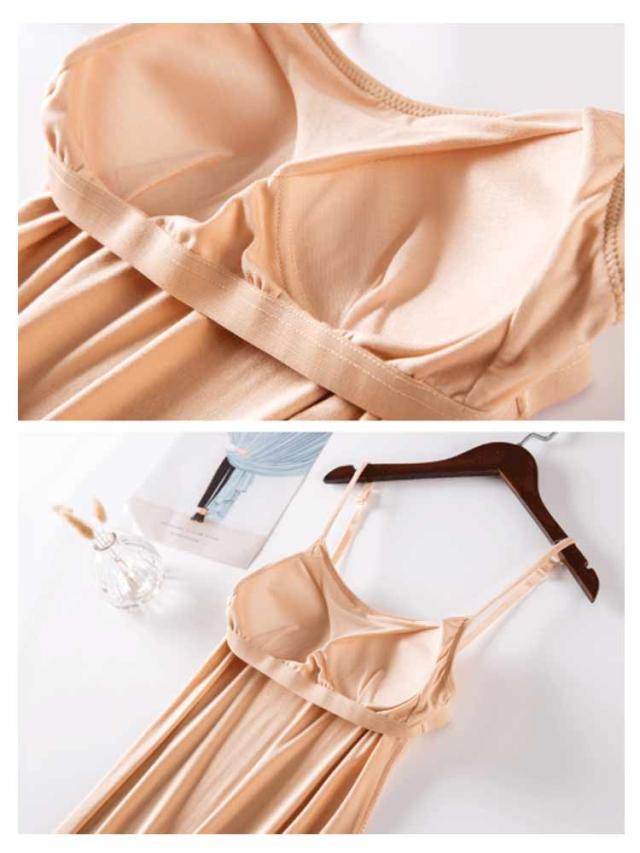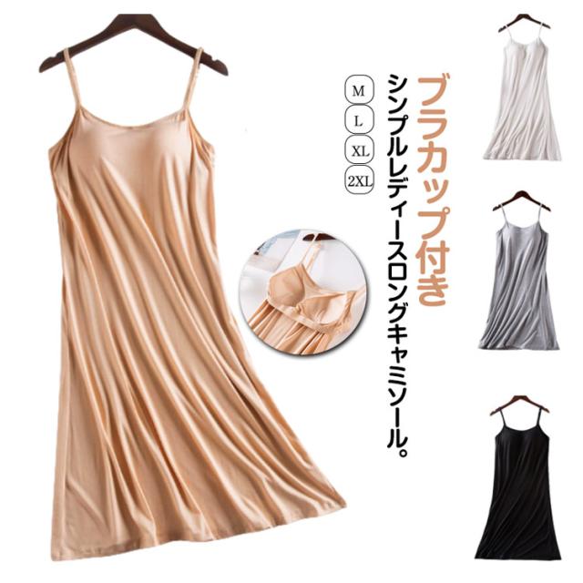 インナーキャミソール ワンピース ロング カップ付き ワンピース ロング キャミソール スリップ ルームウェア 無地 ワンピース レディース インナー 部屋着 ブラカップ付きインナー かわいい シンプル 寝巻き ロングキャミソール