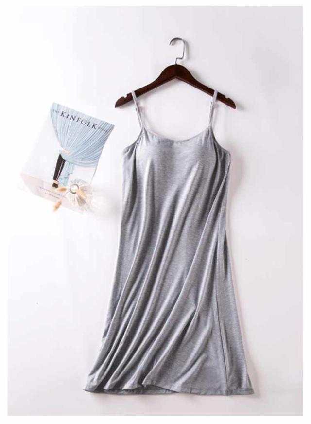 | ブラカップ付きシンプルレディースロングキャミソール。 リラックス出来る部屋着としてもナイトウェアーとしてもいいかも ノーワイヤーので、いつ着ても束縛感はありません。普段使いから寝るまで24時間着用でもOKです。 | |