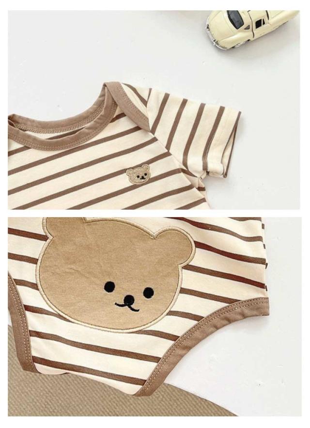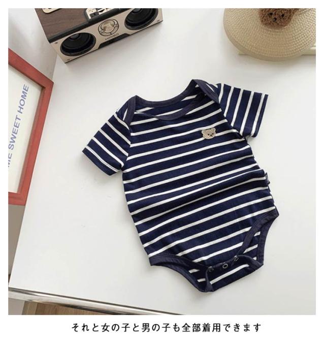 新生児 くま 男の子 ベビー服 女の子 北欧風 新生児 柔らかい ロンパース 股ボタン カバーオール ショートロンパース 夏 半袖 韓国子供服 出産祝い ボーダー 肌着 七五三 退院着 お出かけ 部屋着 66 73 80