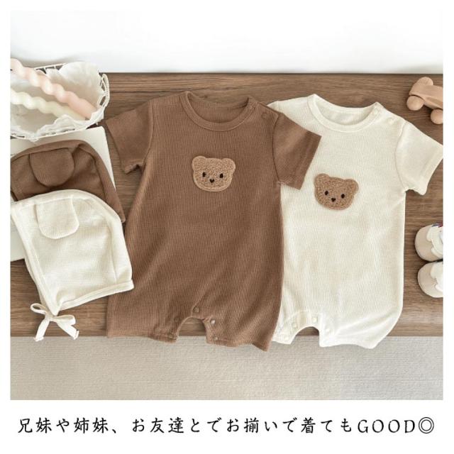 女の子 男の子 ロンパース ベビー クマ 赤ちゃん おしゃれ 春 ベビー服 赤ちゃん服 かわいい 可愛い 半袖 ワッフル 夏 秋 コットン 出産祝い 通園 普段着 肌着 ベビーロンパース インスタ映え 韓国子供服 子供服