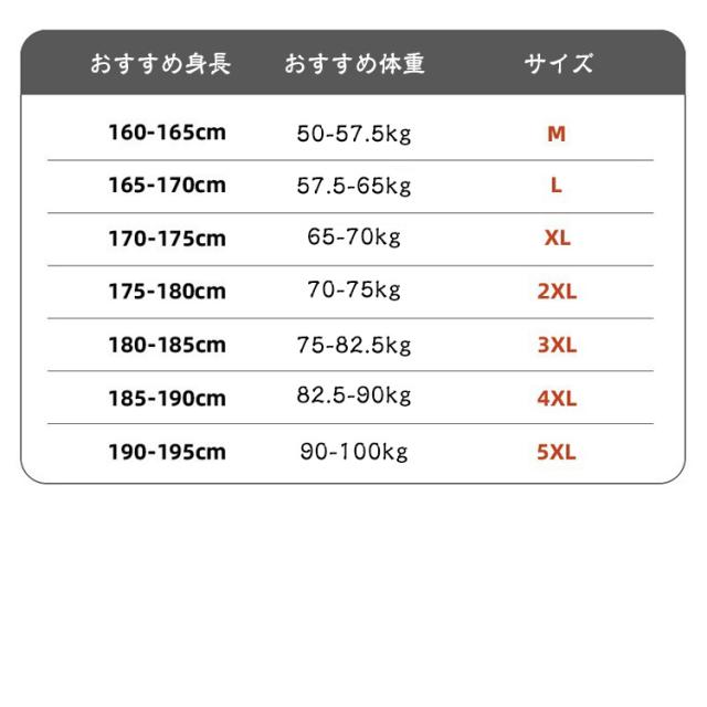 | サイズ | M L XL 2XL 3XL 4XL 5XL |