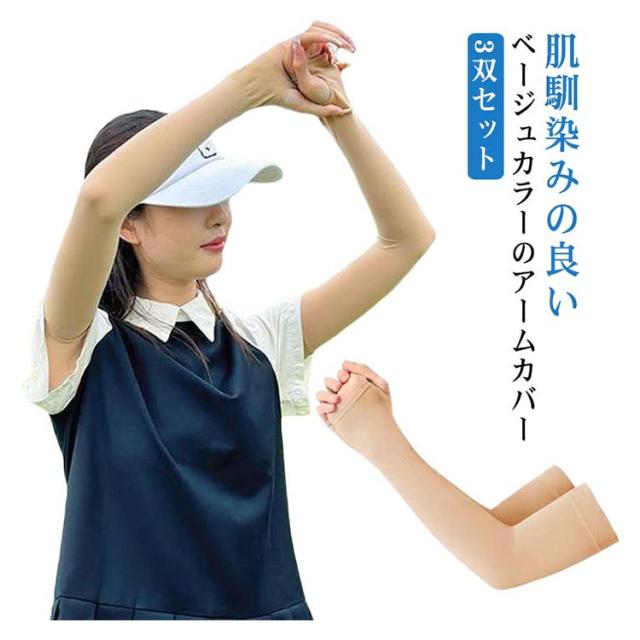 UVカット アームカバー 肌色 3双セット レディース メンズ 肌補正 シワ しわ たるみ 隠し 日焼け対策 ゴルフウェア 紫外線カット スポーツ用