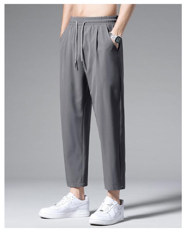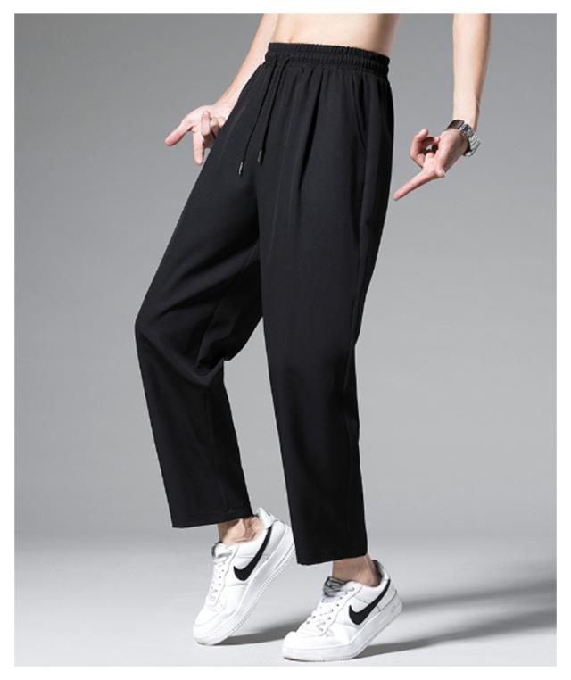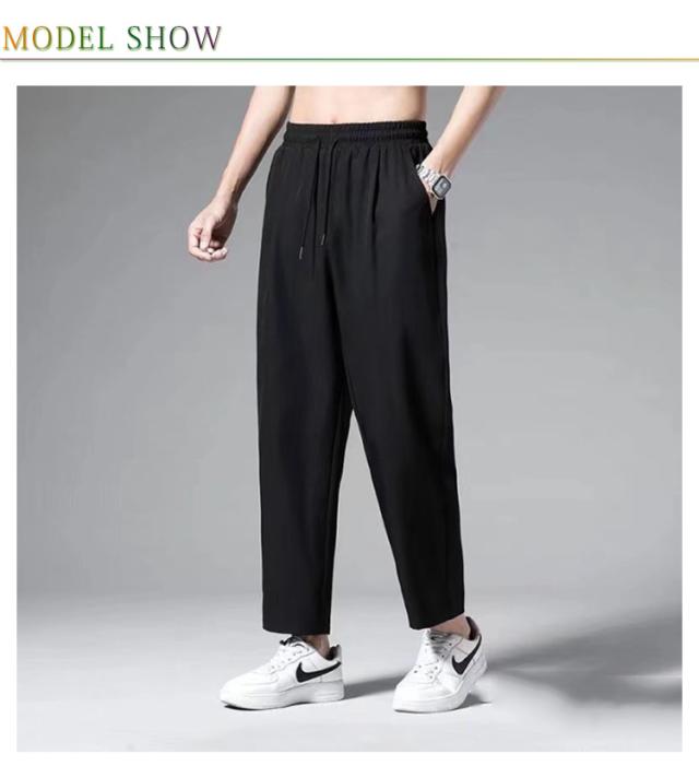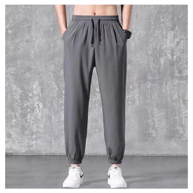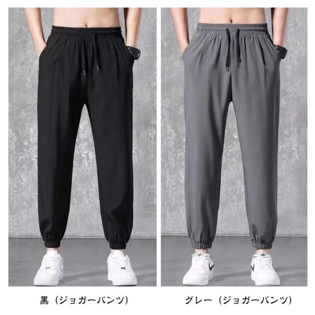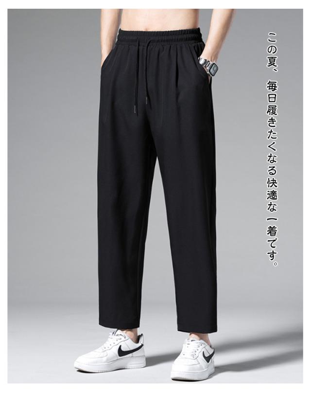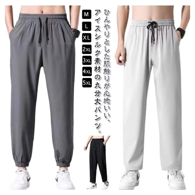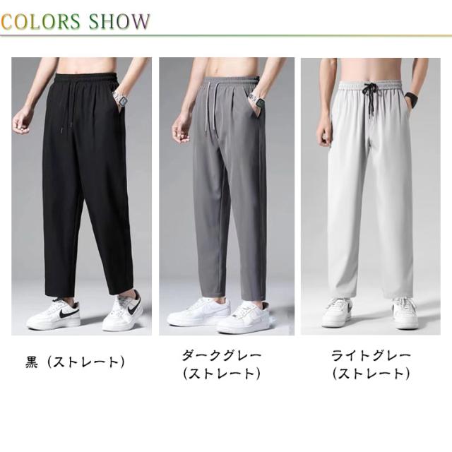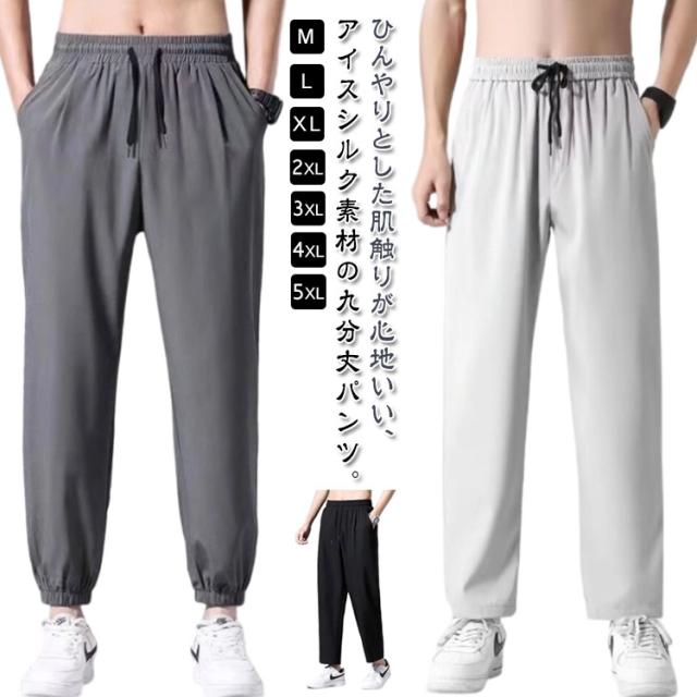 ロングパンツ アイスシルクパンツ 春夏 アイスシルクパンツ カジュアルパンツ 薄手 ドレープ感 アンクルパンツ ワイドパンツ メンズ ストレート テーパード ジョガーパンツ 裾リブ サマー 接触冷感 ひんやり