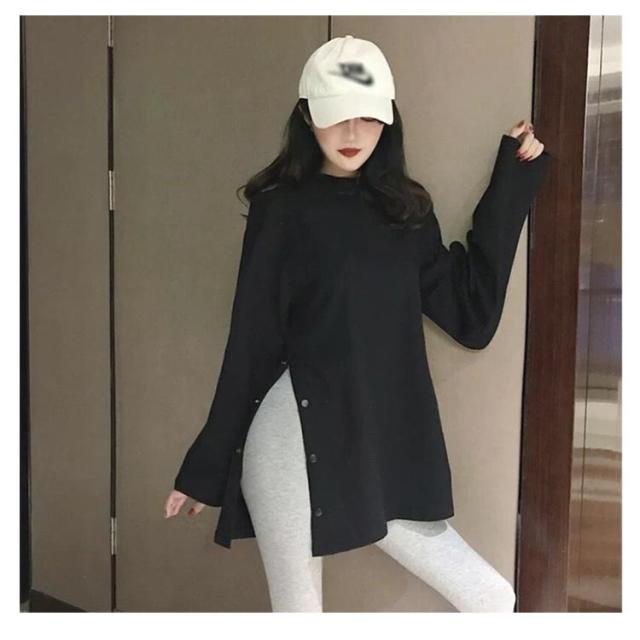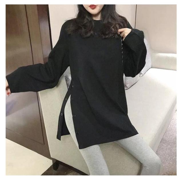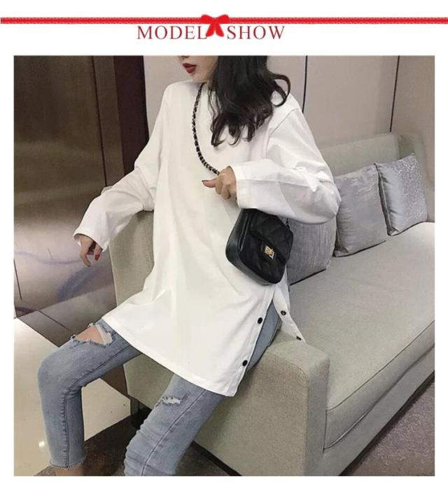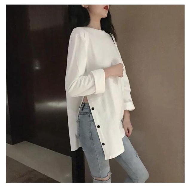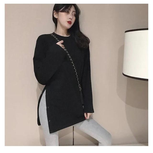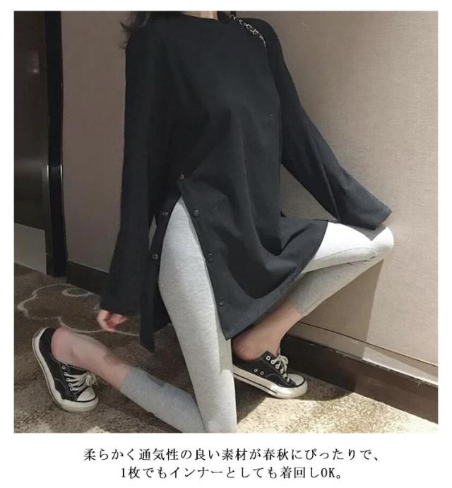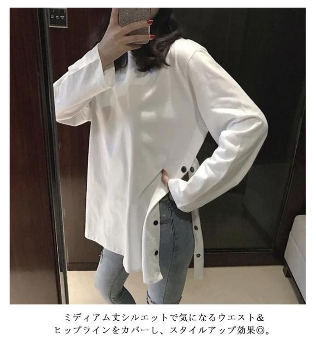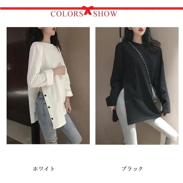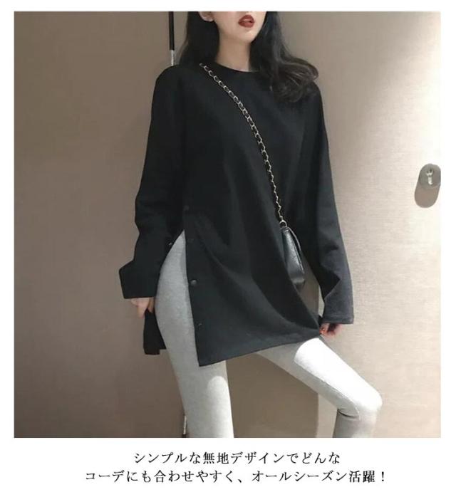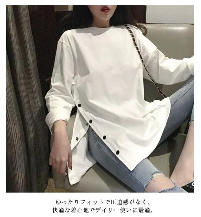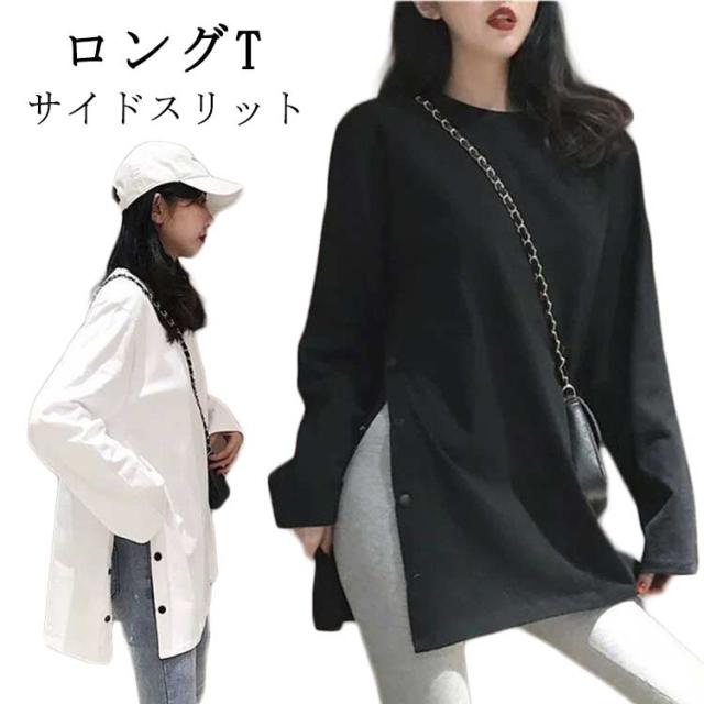 ロングT レディース カットソー tシャツ うゆったり 無地T 長袖 大きサイズ ロングtシャツ スリットtシャツ ロング丈 丸首 春 秋 ロングT おしゃれ