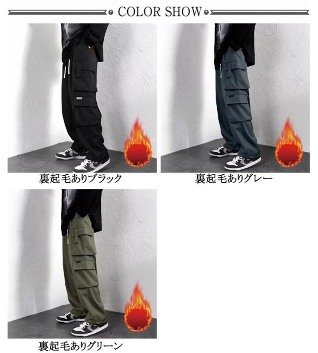 | 裏起毛無しと裏起毛ありの2タイプ選べる! 大人のカーゴパンツ。リラックス感たっぷりのストリートパンツ。 ズボンの両側に特大のポケットがあり、小物を収納でき、全体的なファッション感を高めます。 とても便利で普段使いはもちろん、キャンプや釣りなどのアウトドアにも最適です。 シンプルからカジュアルまでどんなコーデでも合わせやすいのが嬉しいポイント♪ | |