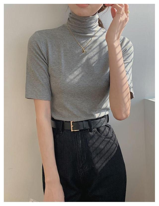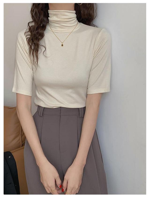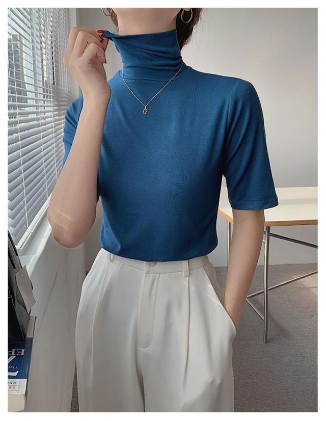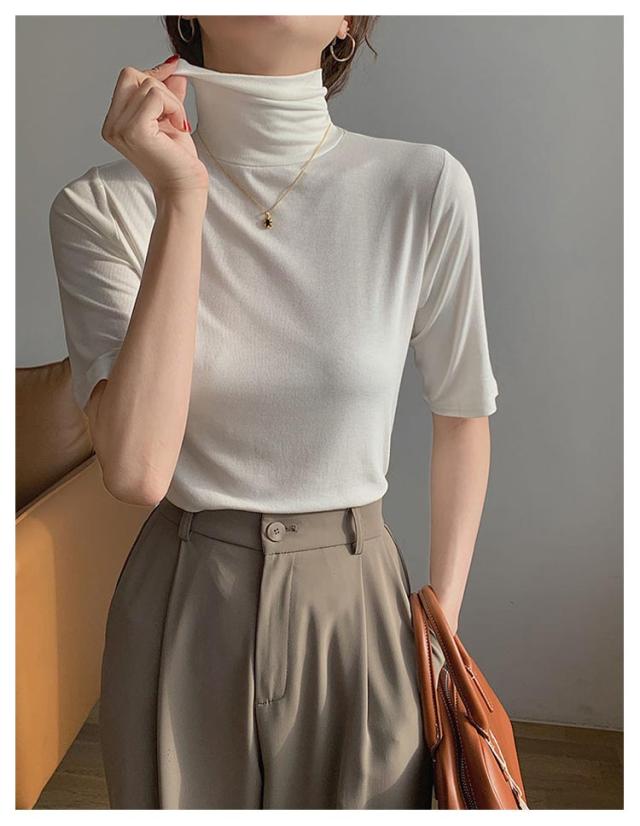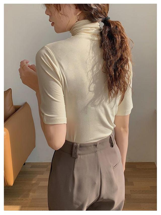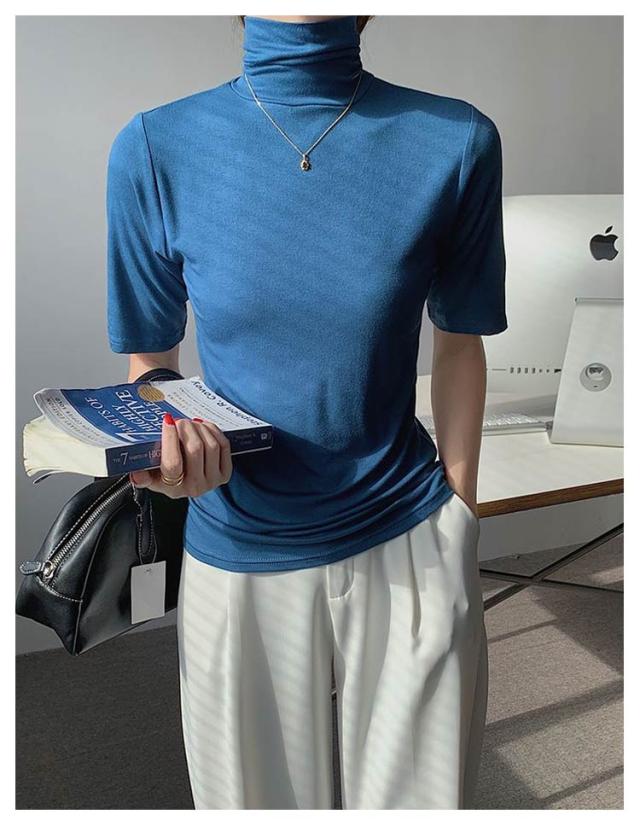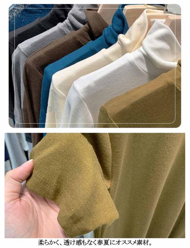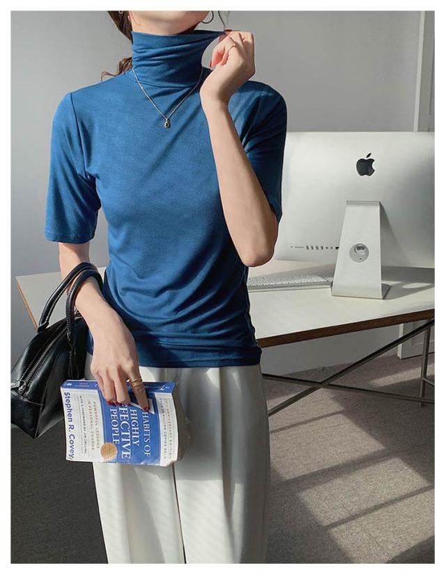 タートルネック タートルネック ゆったり ハイネック レディース 無地 半袖Tシャツ 春 夏 薄手 トップス カットソー シンプル 五分袖 フィット スリム 大きいサイズ 20代 30代