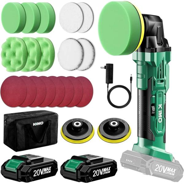 車用電動ポリッシャー 充電式ポリッシャー コードレス2.0Ahバッテリー 2個 6速 大径バフ増量 QM-5005