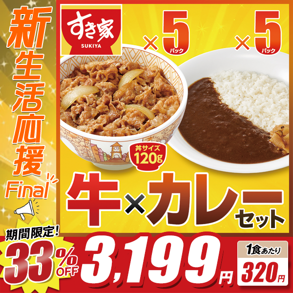 1食320円!! 33%off!! 新生活応援FINAL! すき家 牛×カレーセット 牛丼の具120g 5パック×横濱カレー220g 5パック【送料無料】【冷凍(クール)】