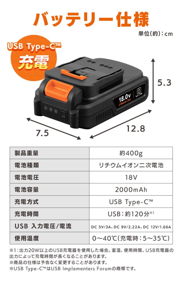 ※USB充電器は付属していません。出力20W以上のUSB Type-C(TM)端子搭載の充電器(PSE適合品)をご用意ください。