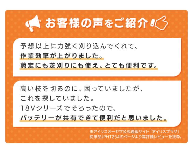 【Type-C充電&バッテリー共用できる】ポールヘッジトリマー 充電式 18V 剪定バリカン 高枝切りバサミ 電動 軽量 最大1.8m 高所 生垣 高枝 庭木 植木剪定 コンパクト 肩掛けストラップ アイリスオーヤマ JPHT254TC *