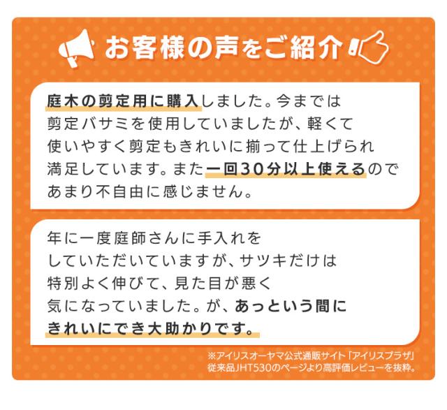 【Type-C充電&バッテリー共用できる】ヘッジトリマー 充電式 18V 電動 ロングブレード 剪定バリカン 枝切りバリカン 軽量 コンパクト コードレス 生垣 植木 庭木 ブレードカバー アイリスオーヤマ JHT530TC *