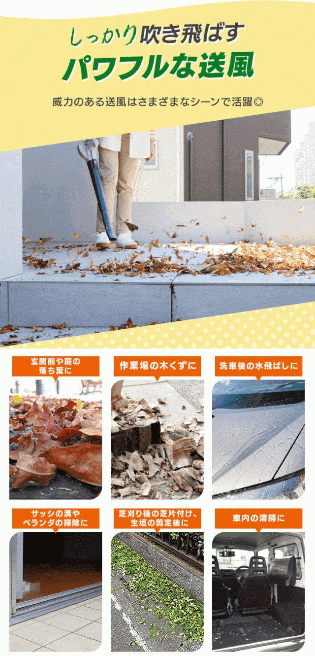 しっかり吹き飛ばすパワフルな送風で、さまざまなシーンで役に立ちます。