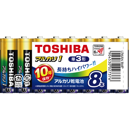 東芝【TOSHIBA】アルカリ1 アルカリ乾電池 単3形 1パック8本入り まとめパック 10年長期保存 LR6AN-8MP【防災用品 防災備蓄等】