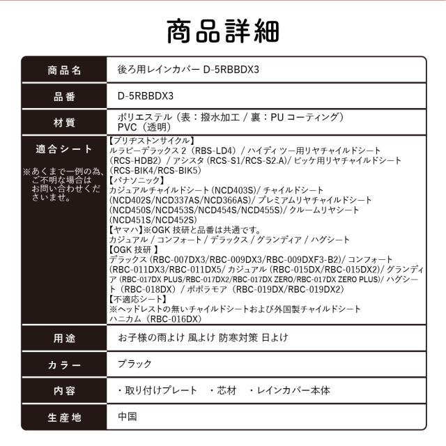 商品名 【Bスタイル】後ろ用チャイルドシートレインカバー D-5RBBDX3
