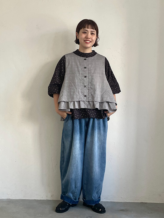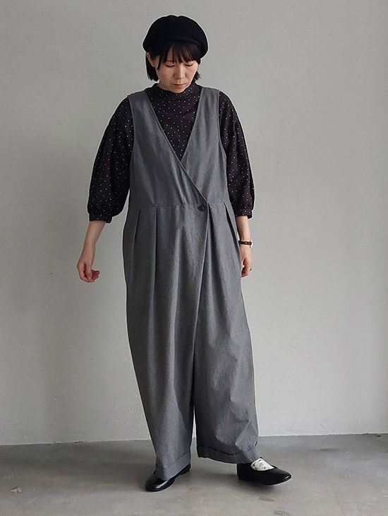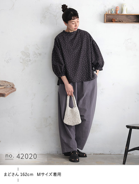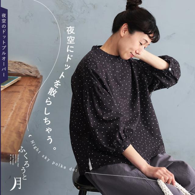 ふくろうと月 夜空のドットプルオーバー レディース ブラウス 7分袖 パフスリーブ バルーンスリーブ スタンドカラー トップス