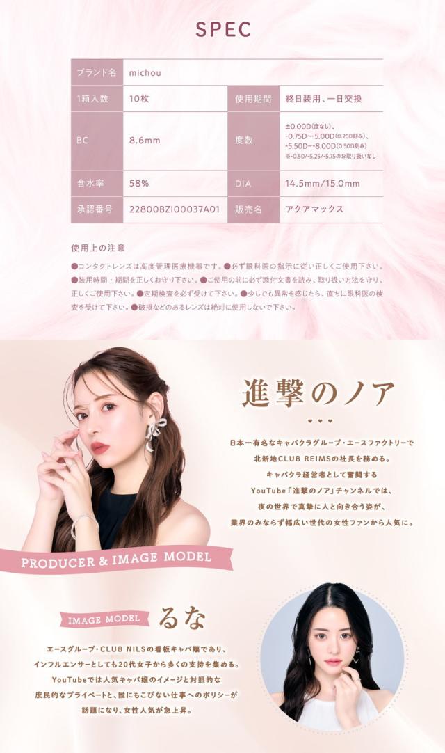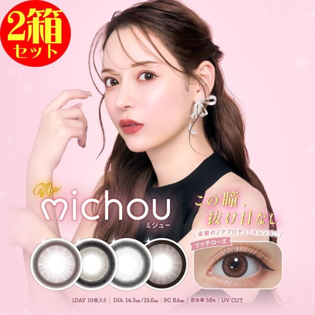 カラコン 2箱セット michou ミシュー ワンデー 1箱10枚入り 度あり 度なし UV加工 1日使い捨て 高含水 58% 圧倒的に盛れる カラー コンタクト 1day 進撃のノア