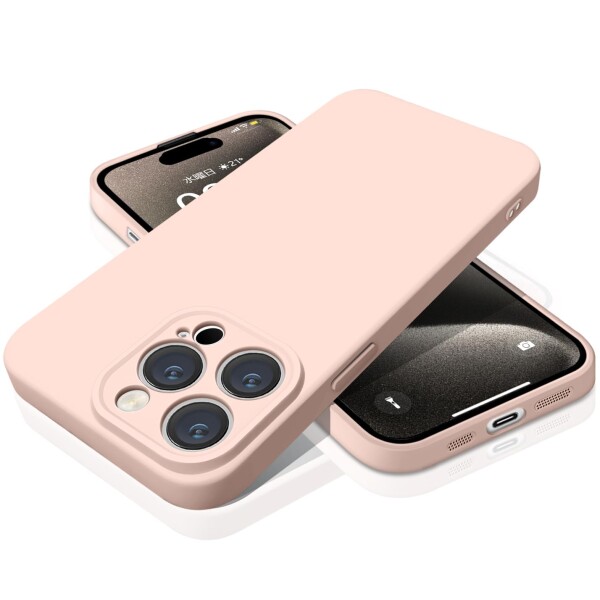 iPhone15 Pro 用 ケース シリコン アイフォン15 プロ カバー スマホケース 耐衝撃 衝撃吸収 レンズ保護 傷つけ防止 指紋防止 全面保護 バンパー(ピンク)