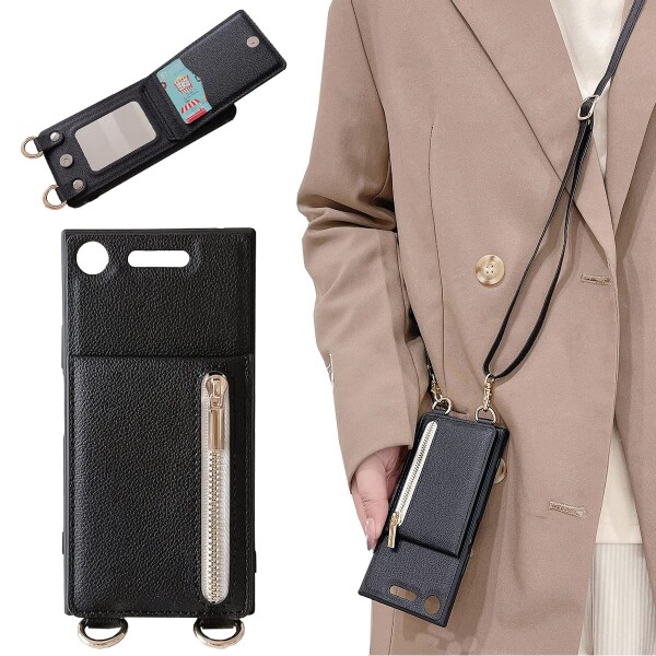 Xperia XZ1 ケース 高質レザー Xperia XZ1 カバー 肩掛け 首かけ 斜めがけ SO-01K ケース ショルダー SOV36 ケース エクスペリア XZ1 カバー ミラーケース 便利 カードポケット スタンド機能 落ち着