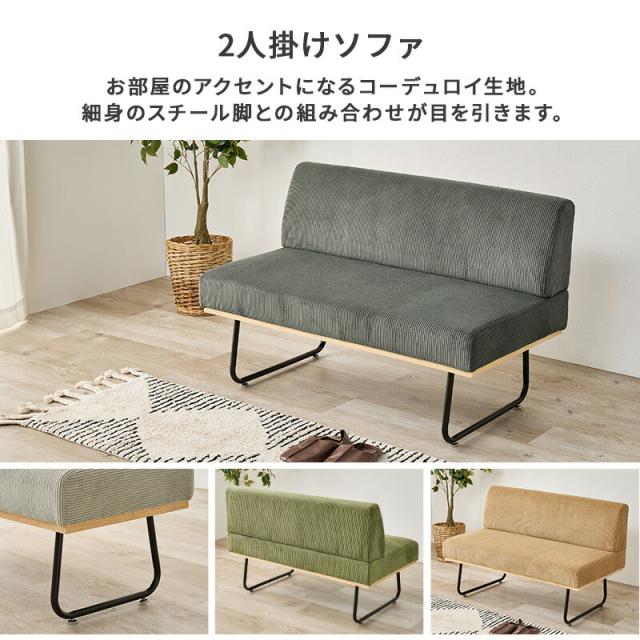 ソファ ソファー 幅105cm 2人掛け 2P コンパクトソファ コーデュロイ 椅子 食卓 カフェ風ソファー 布 二人掛け 肘なし 2P カフェス風 モダンリビング 一人暮らし おしゃれ シンプル 北欧 LSF-4447-2P
